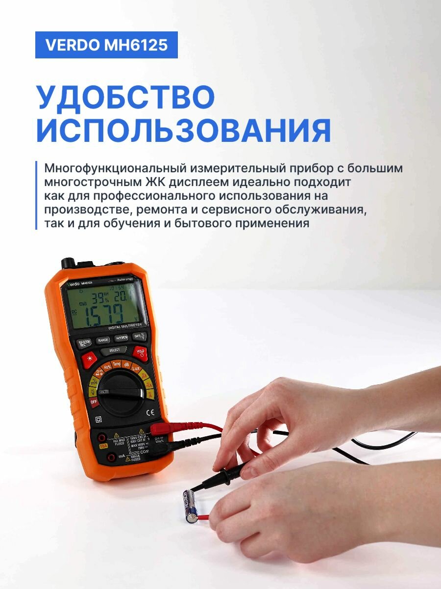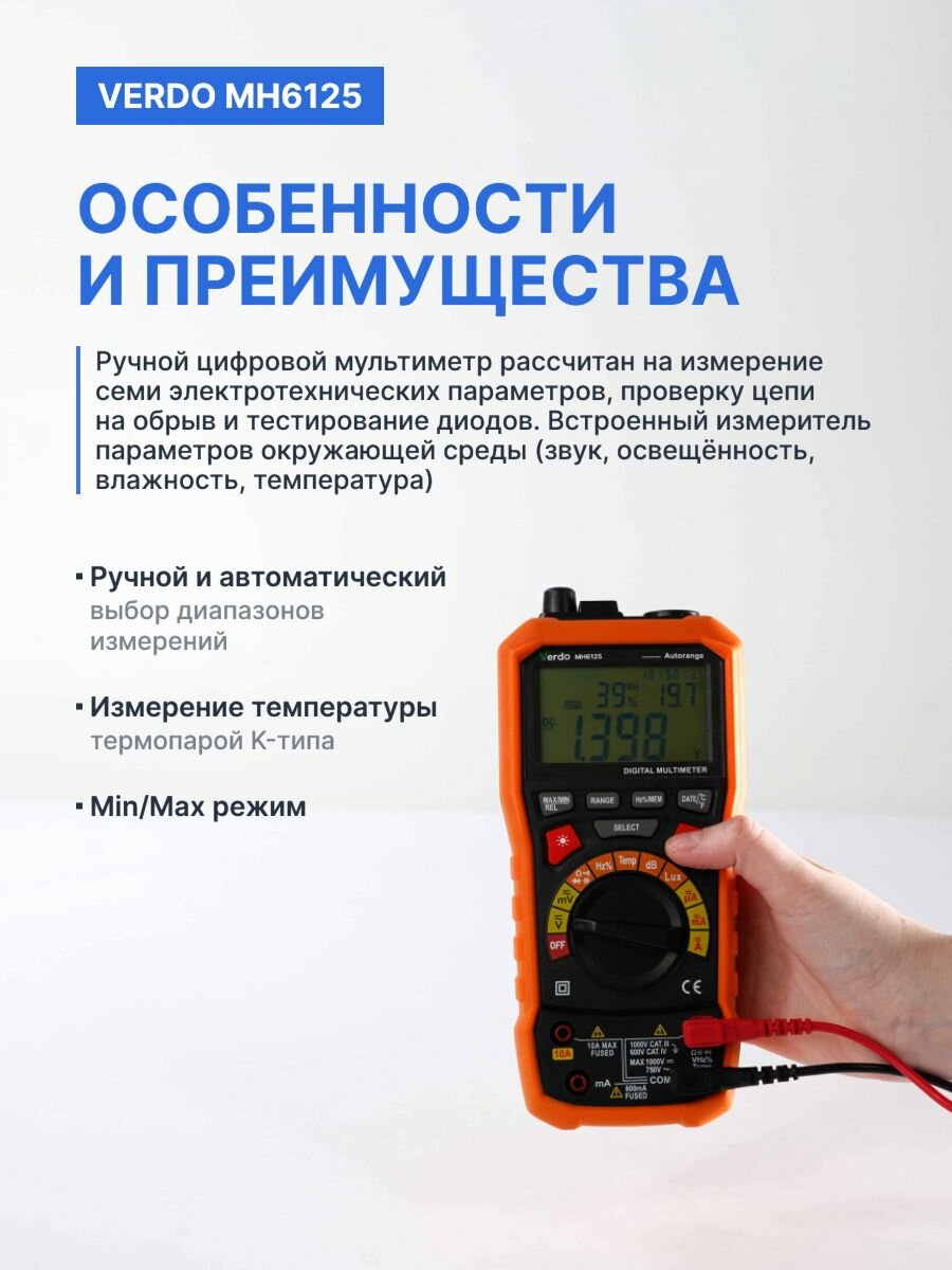 | Особенности | автоматический выбор диапазона измерений, подсветка дисплея |