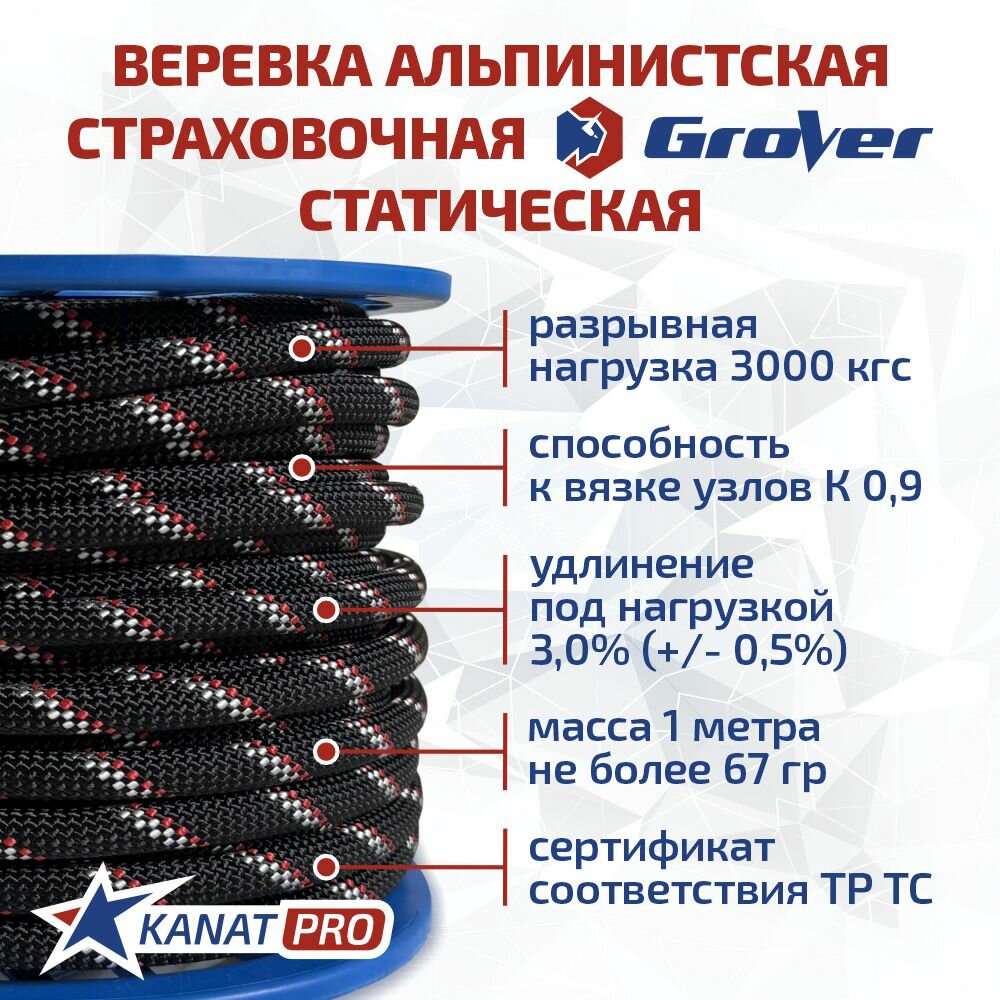 Купить Веревка альпинистская Grover, диаметр 10мм, разрывная нагрузка 30кН, длина 50м с доставкой по всей России.