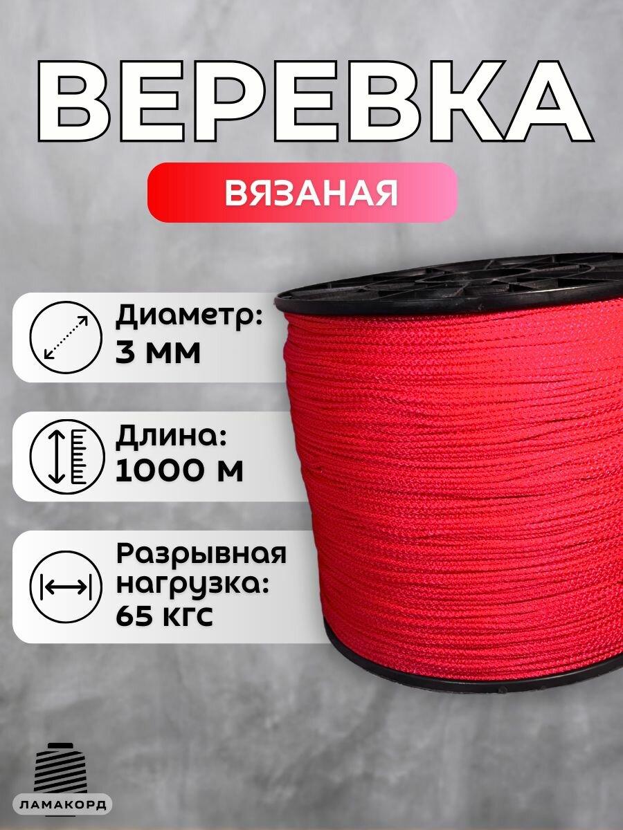 Веревка бельевая 3 мм 1000 м красная. Шнур бельевой вязаный с сердечником. Шнур для рукоделия