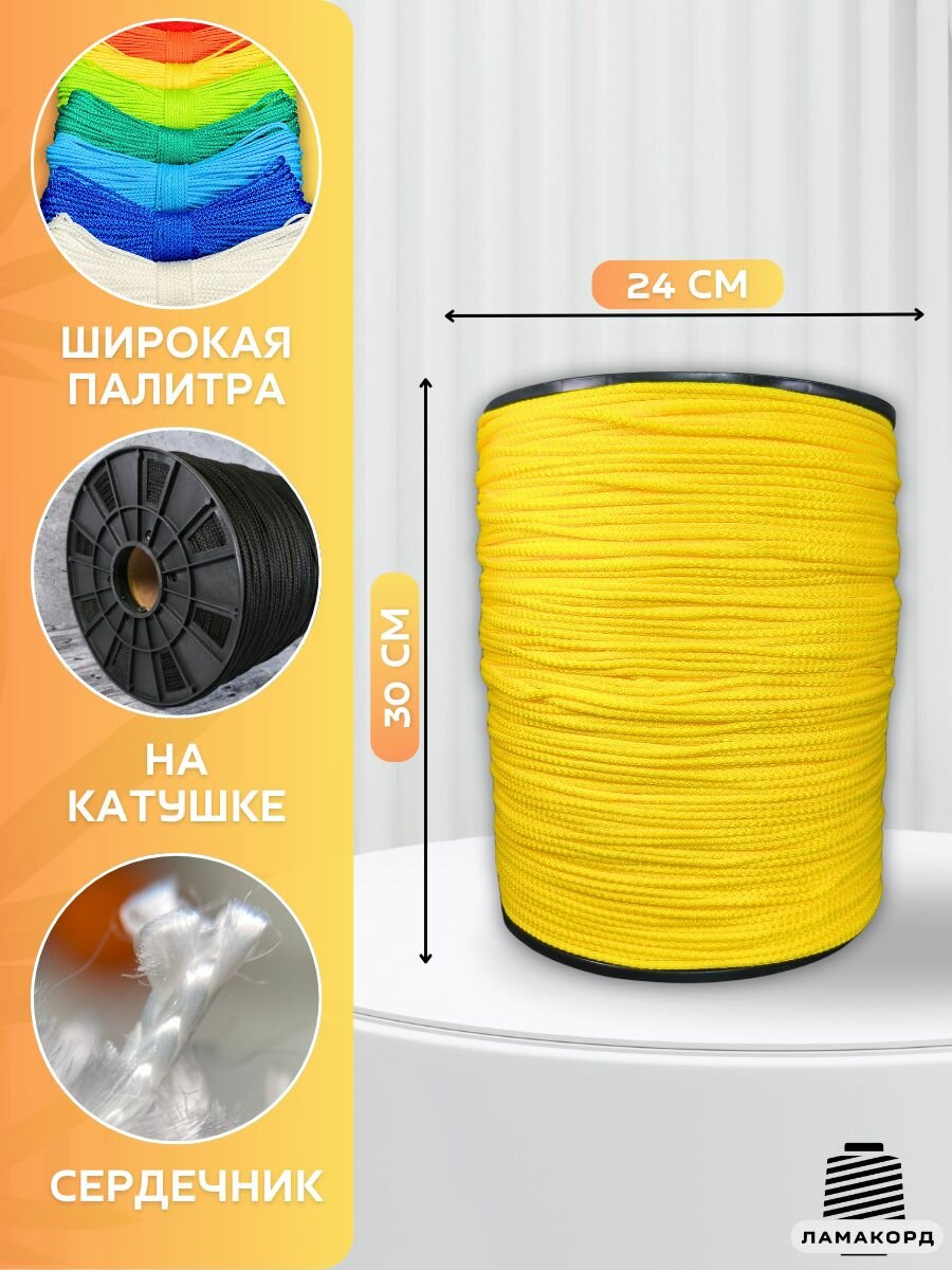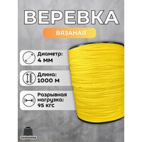 Веревка бельевая 4 мм 1000 м желтая. Шнур бельевой вязаный с сердечником. Шнур для рукоделия