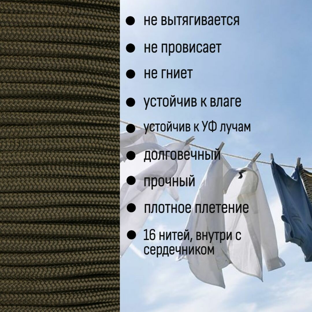 Веревка бельевая, хозяйственная, универсальная, 6 мм хаки 20 метров: сравнение цен, характеристики, фото, актуальное наличие и цены.
