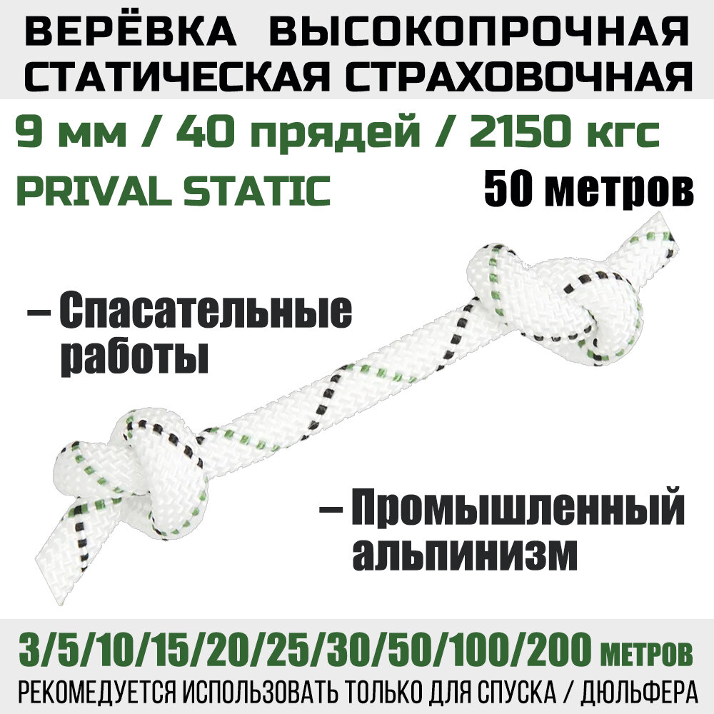 Веревка высокопрочная страховочная Prival Static, 48 прядей, 2150 кгс, 9мм х 50м: сравнение цен, характеристики, фото, актуальное наличие и цены.