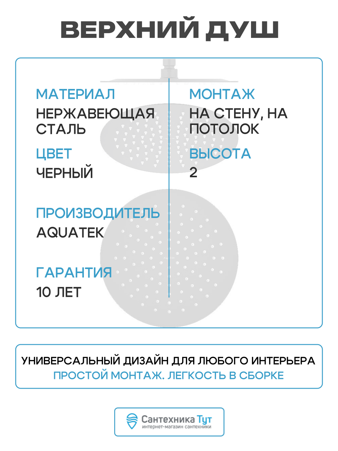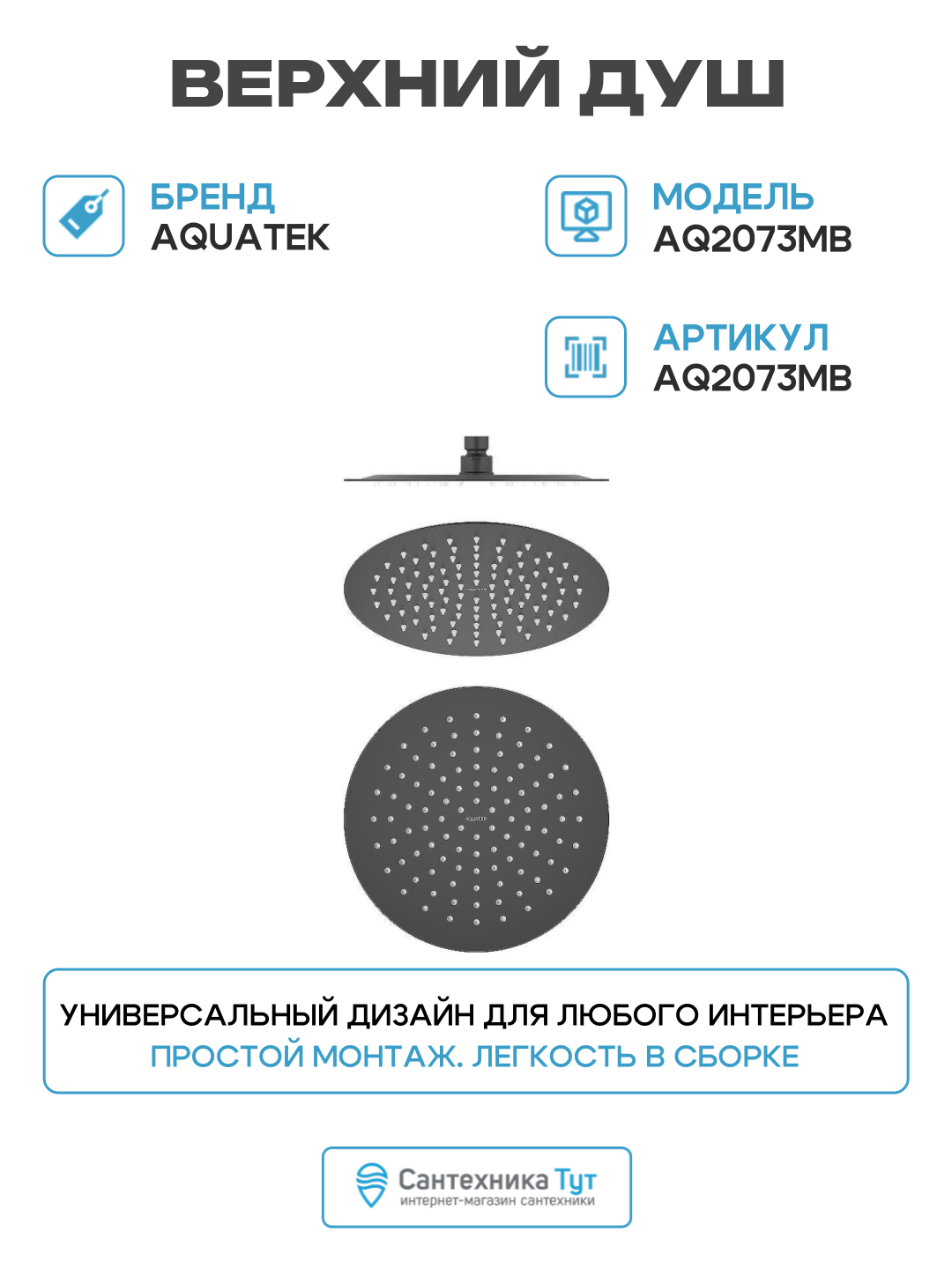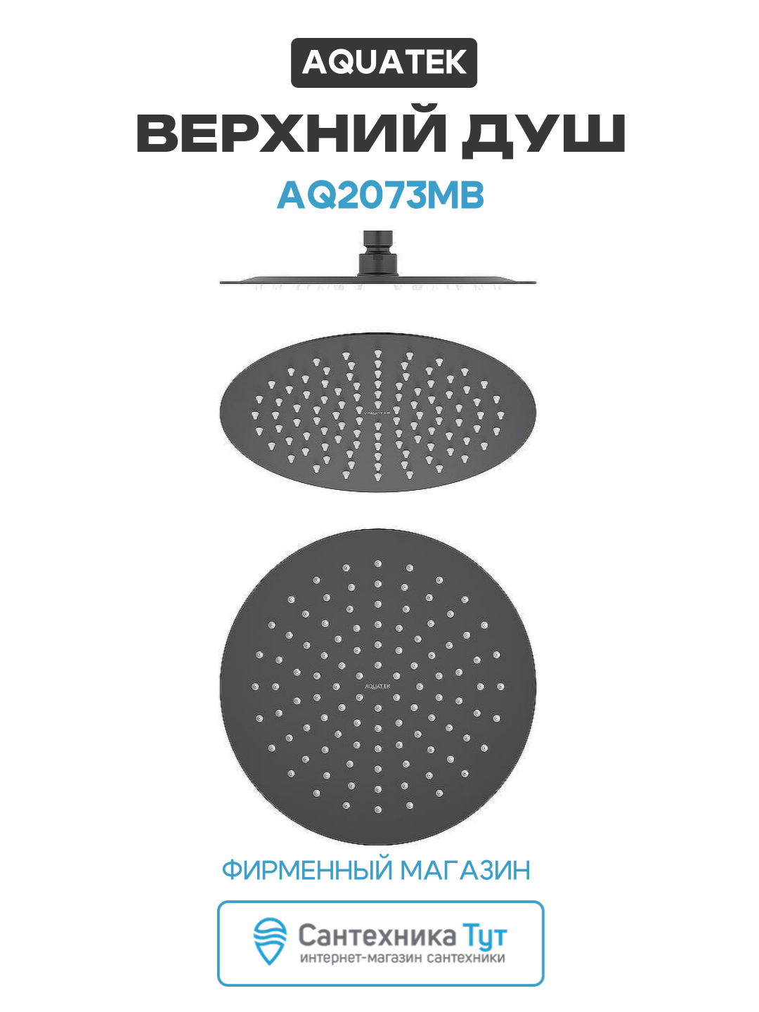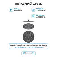 Верхний душ Aquatek AQ2073MB Черный матовый нержавеющая сталь на потолок: сравнение цен, характеристики, фото, актуальное наличие и цены.