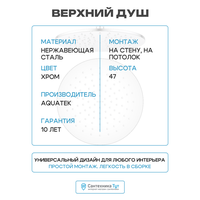 Верхний душ Aquatek AQ2075CR Хром нержавеющая сталь на потолок
