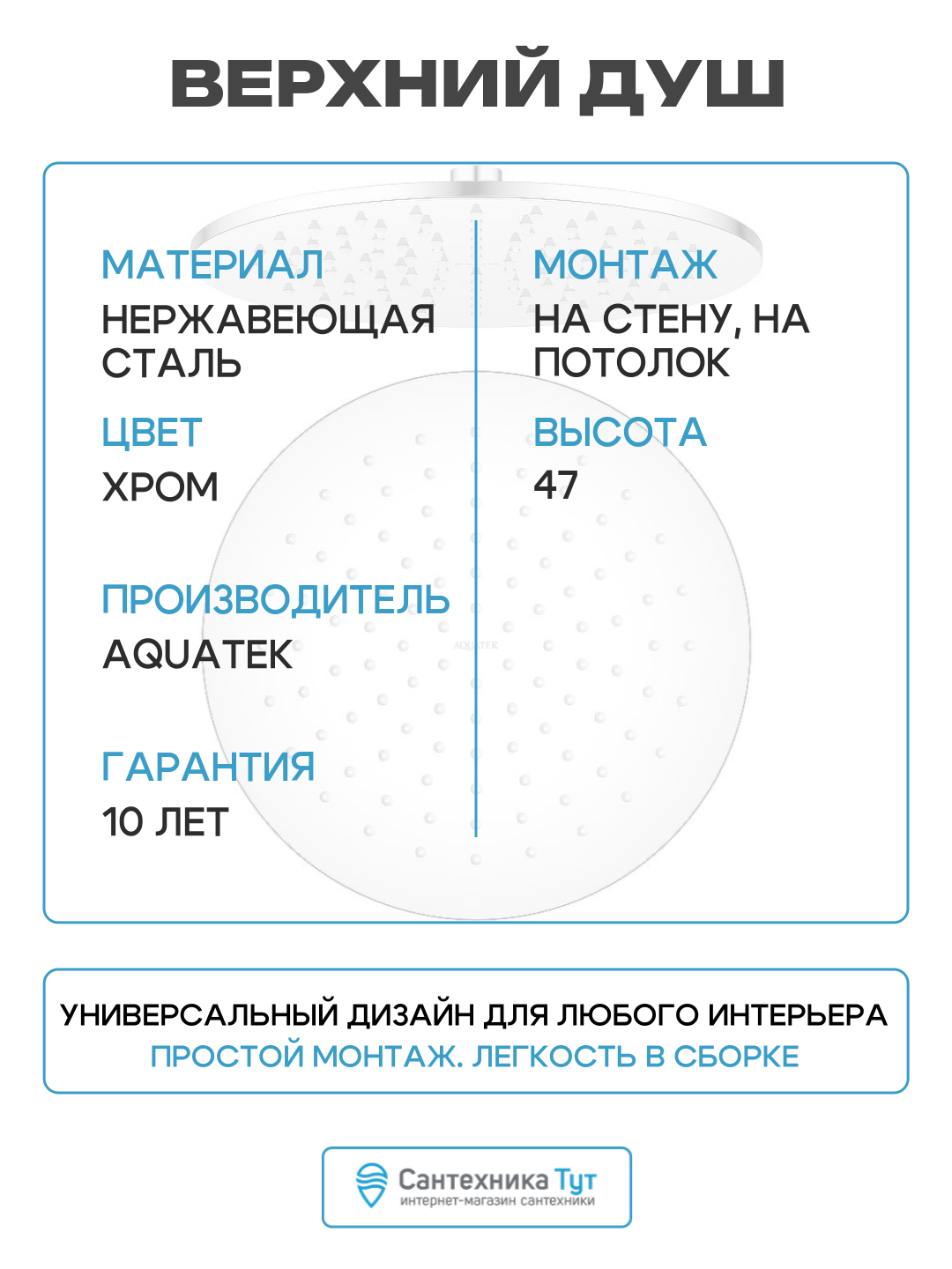 Верхний душ Aquatek AQ2077CR Хром нержавеющая сталь на потолок: сравнение цен, характеристики, фото, актуальное наличие и цены.