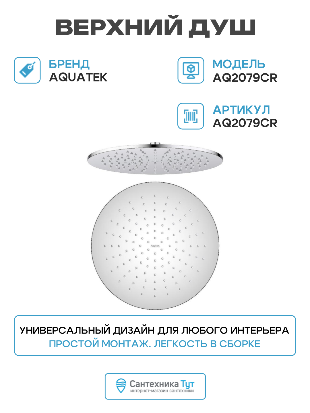 Купить Верхний душ Aquatek AQ2079CR нержавеющая сталь на потолок, современный стиль с доставкой по всей России. Верхний душ Aquatek AQ2079CR нержавеющая сталь на потолок, современный стиль: сравнение цен, характеристики, фото, актуальное наличие и цены.