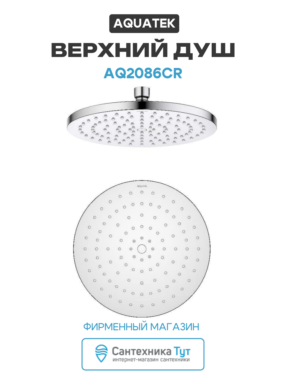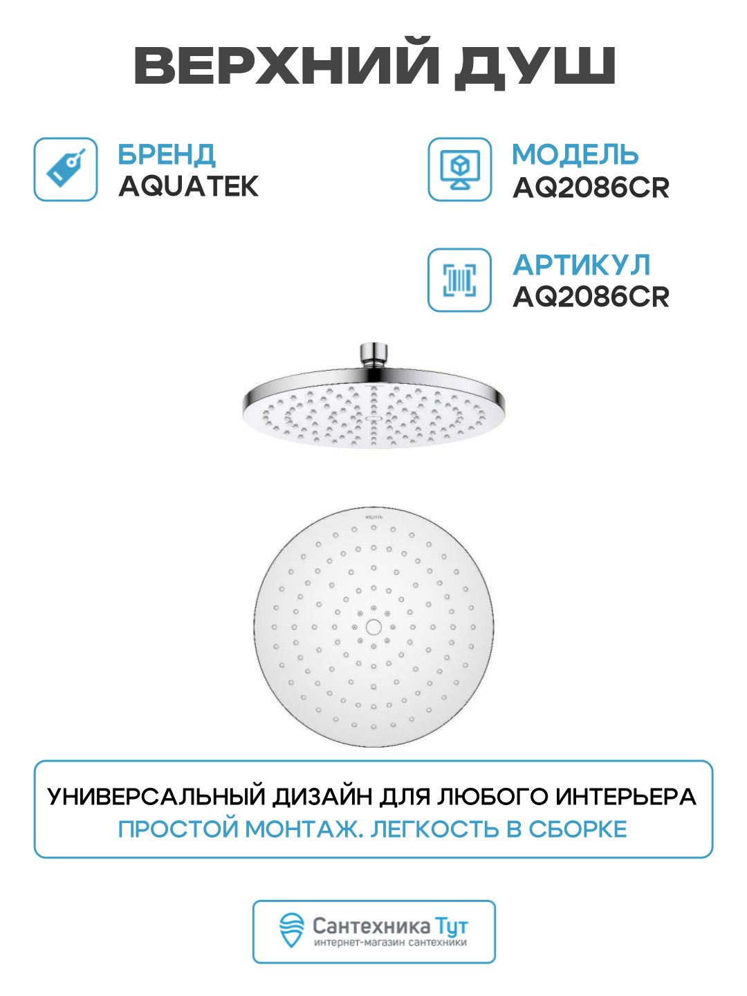 Верхний душ Aquatek AQ2086CR Хром пластик на потолок, современный стиль: сравнение цен, характеристики, фото, актуальное наличие и цены.