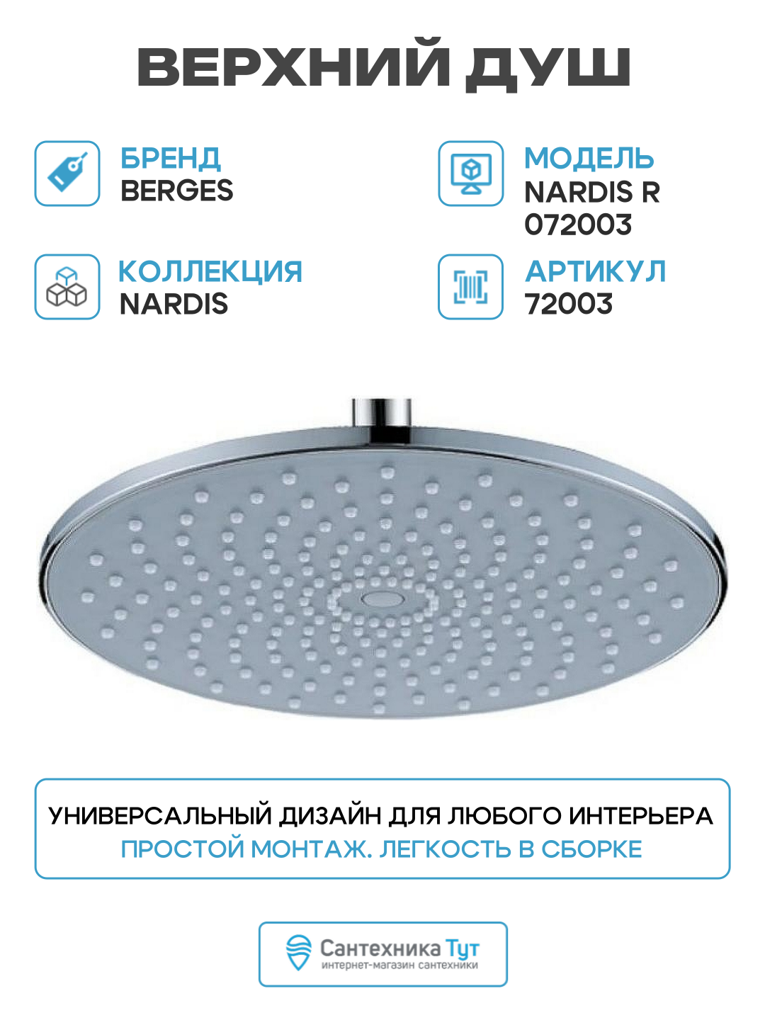 Верхний душ Berges Nardis R 072003 Хром сильвер: сравнение цен, характеристики, фото, актуальное наличие и цены.