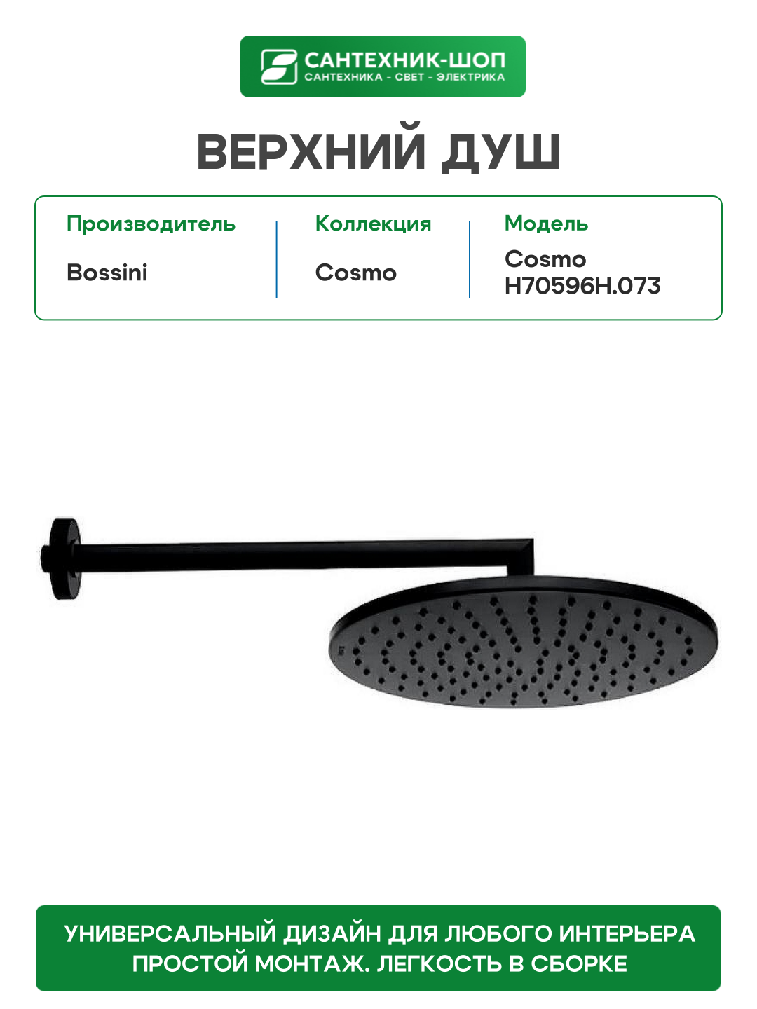 Верхний душ Bossini Cosmo H70596H.073 Черный матовый латунь на стену: сравнение цен, характеристики, фото, актуальное наличие и цены.