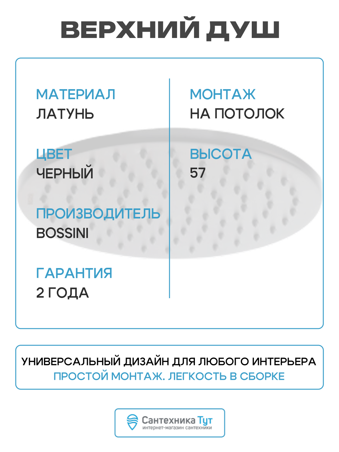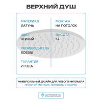 Верхний душ Bossini Cosmo I00596.073 Черный матовый латунь на потолок: сравнение цен, характеристики, фото, актуальное наличие и цены.