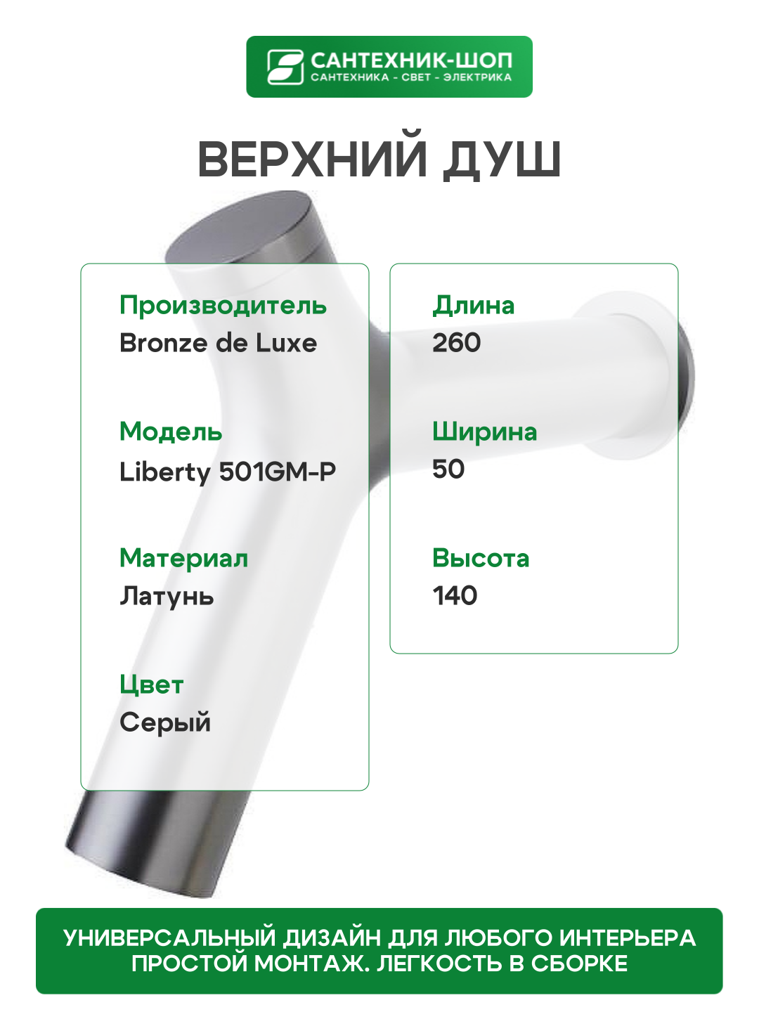Купить Верхний душ Bronze de Luxe Liberty 501GM-P цвет Графит с доставкой по всей России.