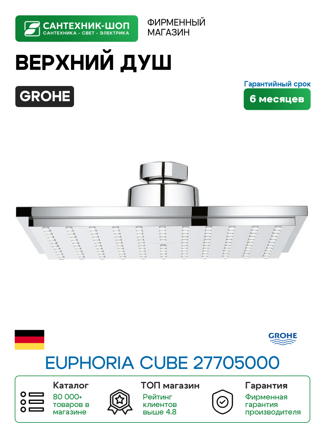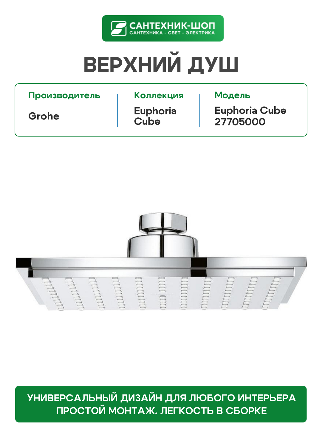Купить Верхний душ Grohe Euphoria Cube 27705000 Хром латунь на потолок с доставкой по всей России.