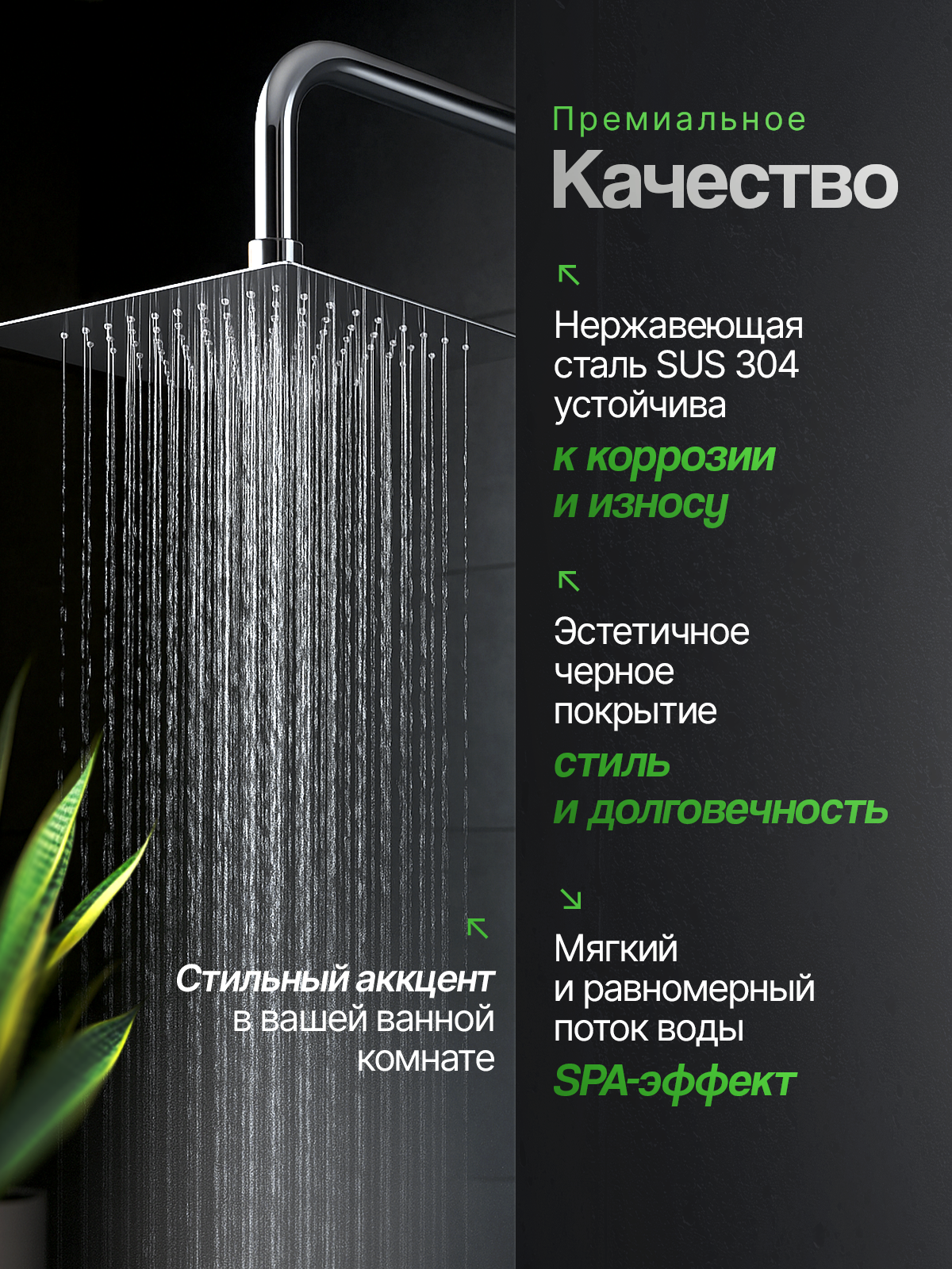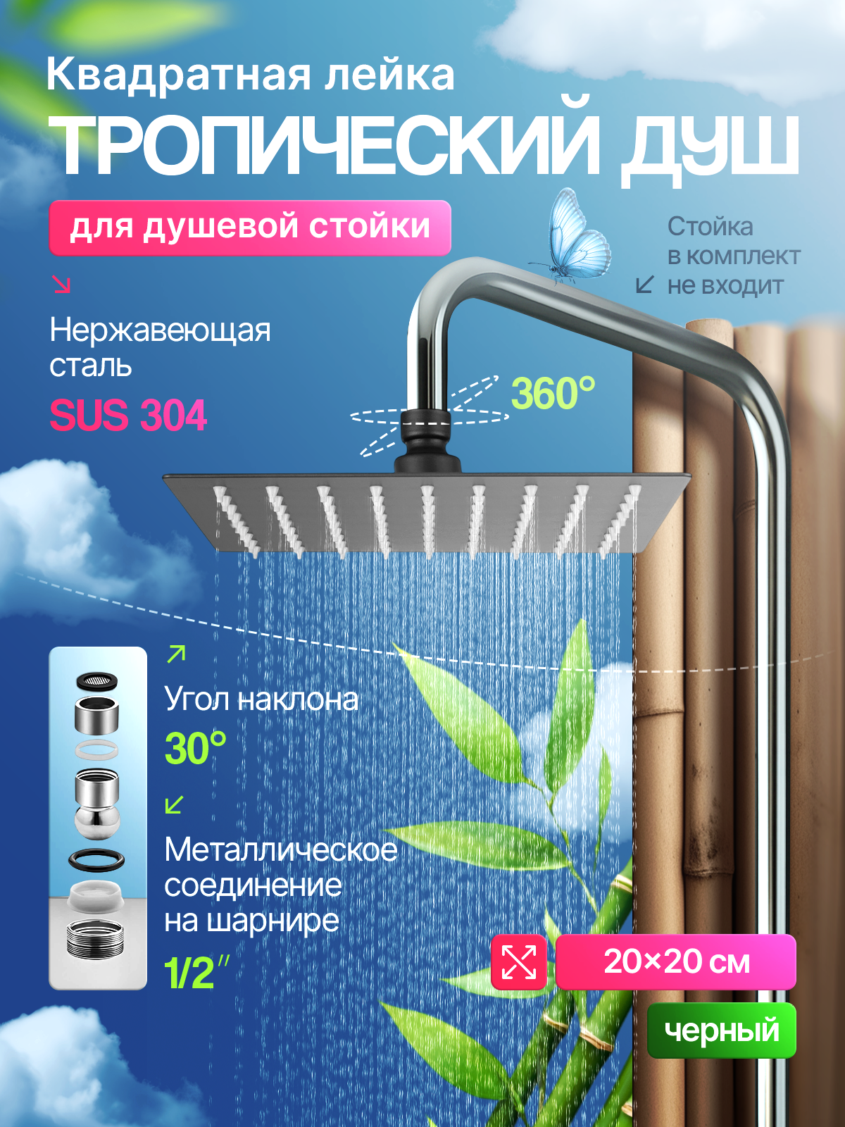 Верхний душ , лейка потолочная тропический душ из нержавеющей стали, черная, квадратная 20 см Wasser Zimmer, самоочищающиеся сопла: сравнение цен, характеристики, фото, актуальное наличие и цены.