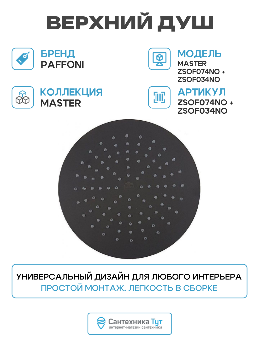 Верхний душ Paffoni Master ZSOF074NO + ZSOF034NO цвет Черный матовый: сравнение цен, характеристики, фото, актуальное наличие и цены.