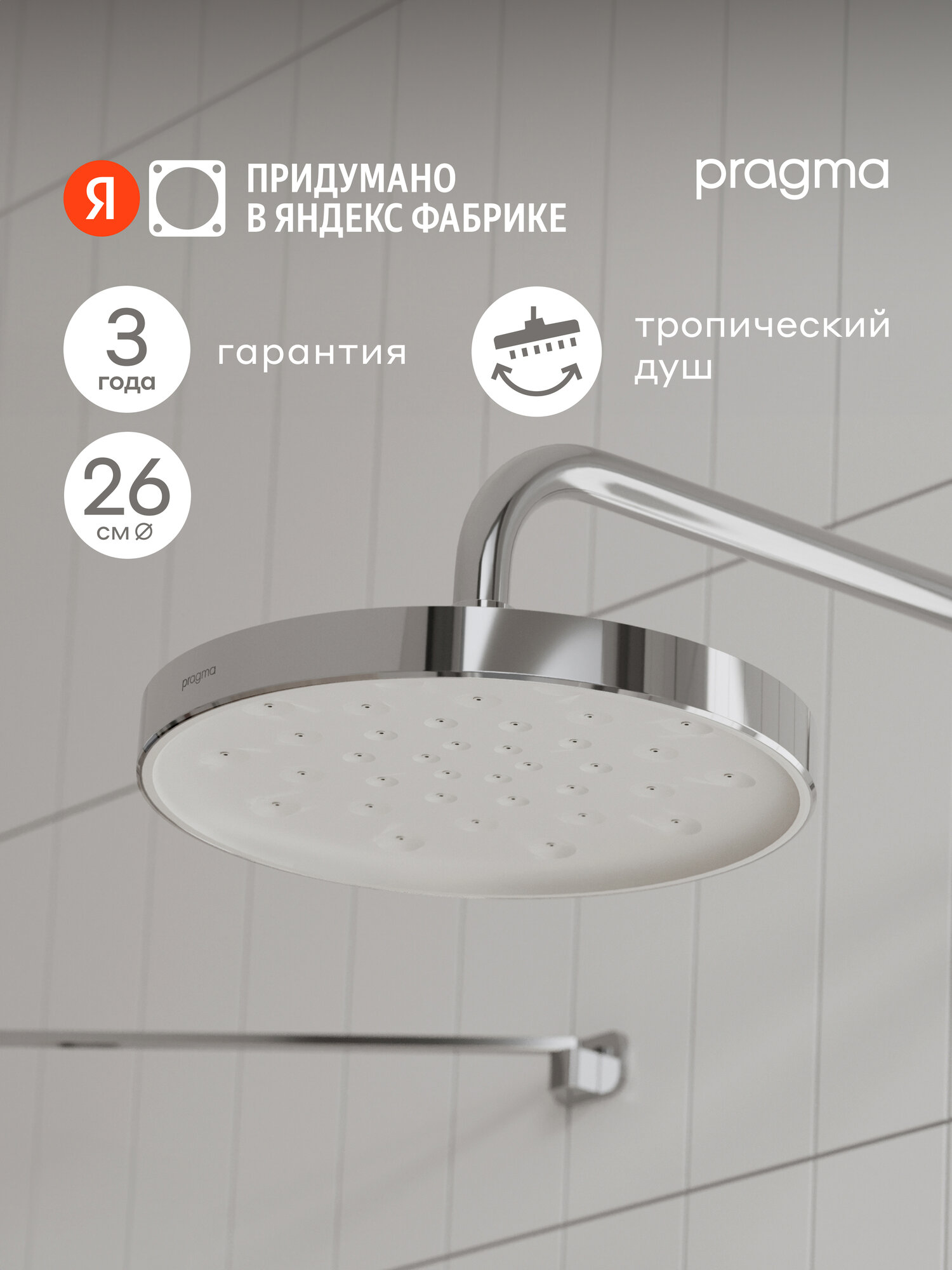 Верхний душ Pragma Olako удобный и продуманный, с постоянным напором воды даже при низком давлении в трубах. У душа расслабляющий SPA-эффект тропического дождя и удобная регулировка наклона: можно быстро и без усилий настроить нужный угол.