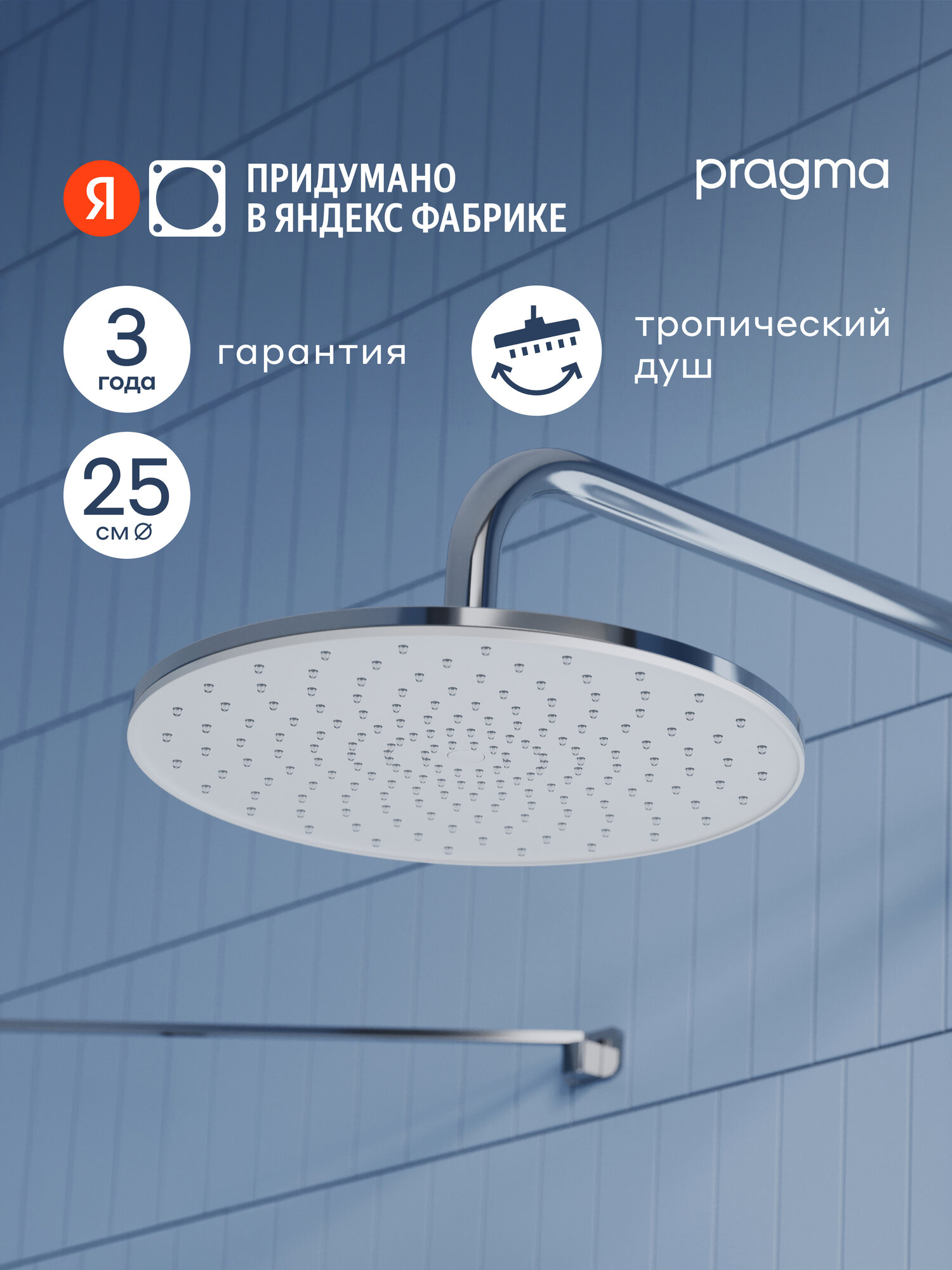 Верхний душ Pragma Teiden удобный и продуманный, с постоянным напором воды даже при низком давлении в трубах. У душа расслабляющий SPA-эффект тропического дождя и удобная регулировка наклона: можно быстро и без усилий настроить нужный угол.