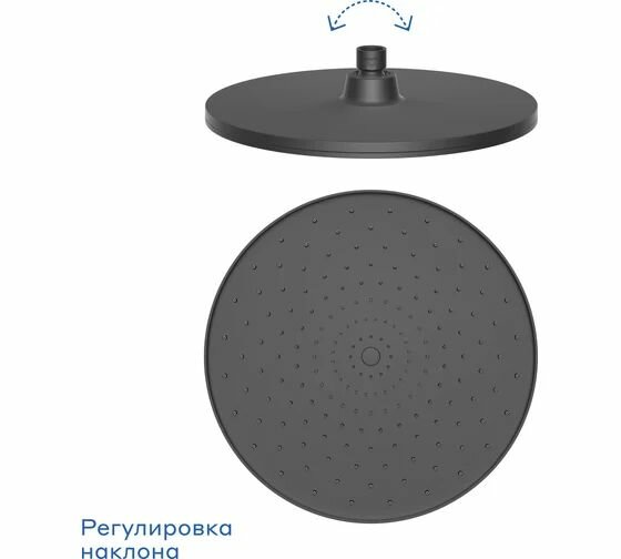 Верхний душ Pragma Teiden удобный и продуманный, с постоянным напором воды даже при низком давлении в трубах. У душа расслабляющий SPA-эффект тропического дождя и удобная регулировка наклона: можно быстро и без усилий настроить нужный угол.