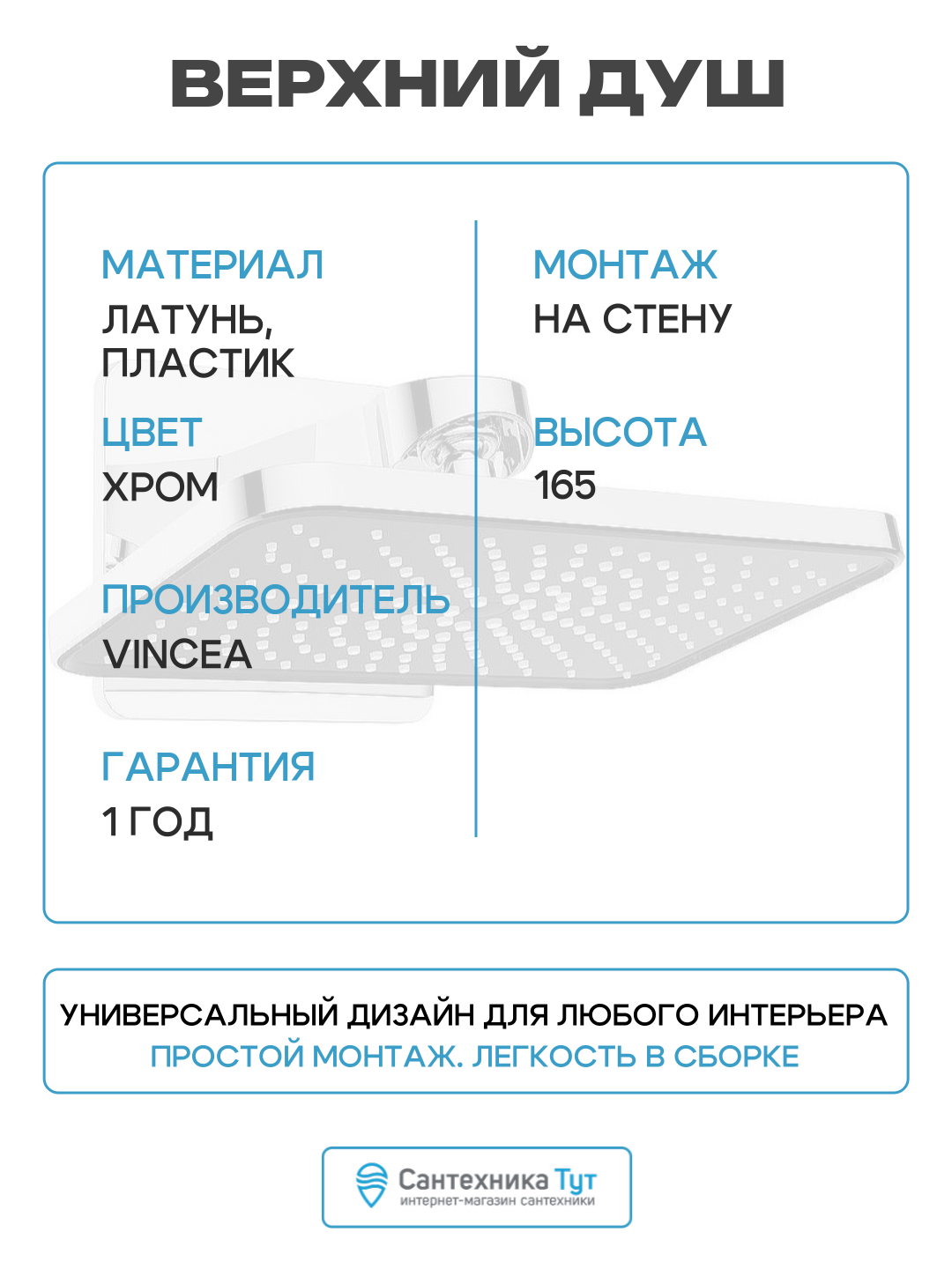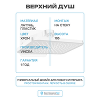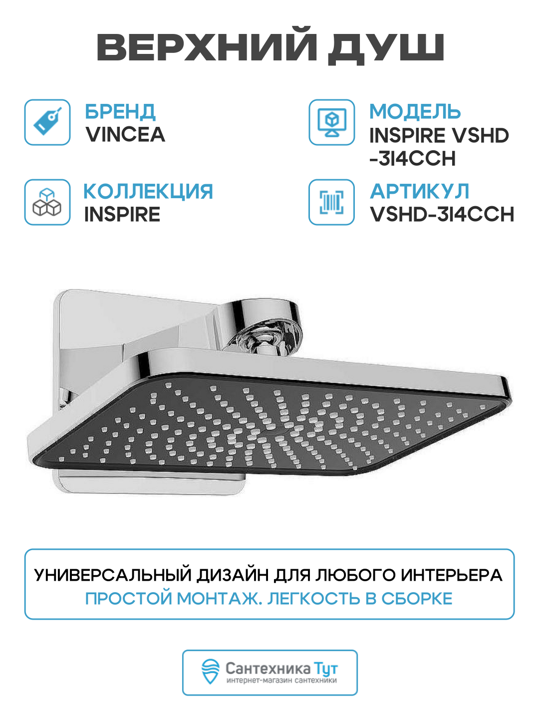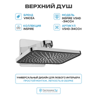 Верхний душ Vincea Inspire VSHD-3I4CCH Хром латунь на стену, современный стиль: сравнение цен, характеристики, фото, актуальное наличие и цены.