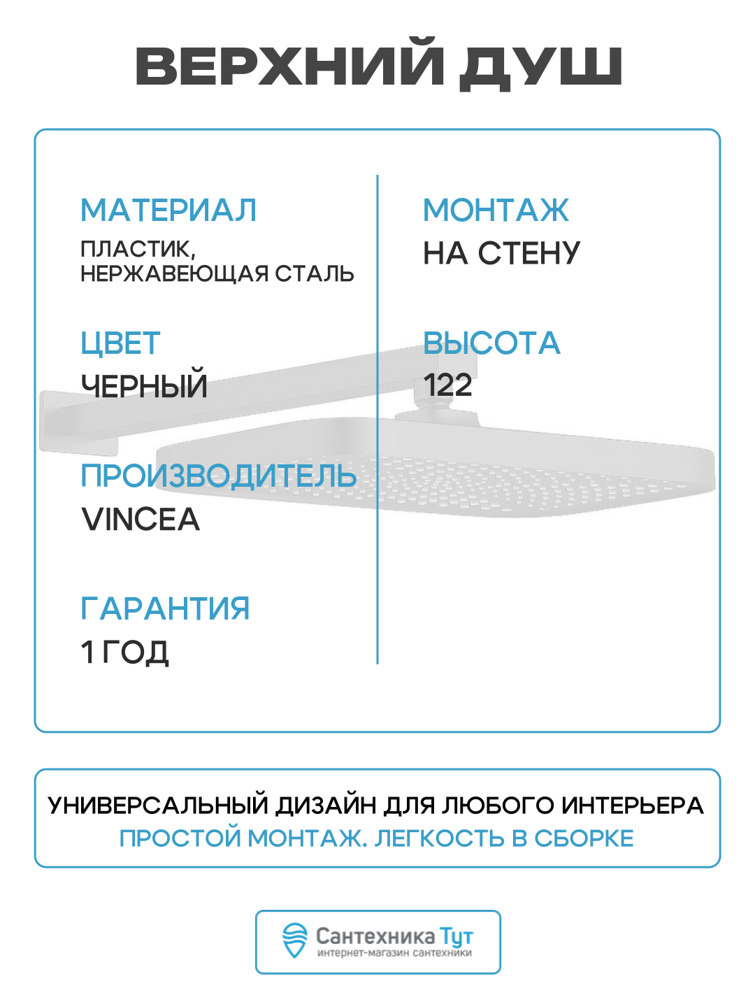 Верхний душ Vincea VSHD-41CMB Черный матовый нержавеющая сталь на стену: сравнение цен, характеристики, фото, актуальное наличие и цены.