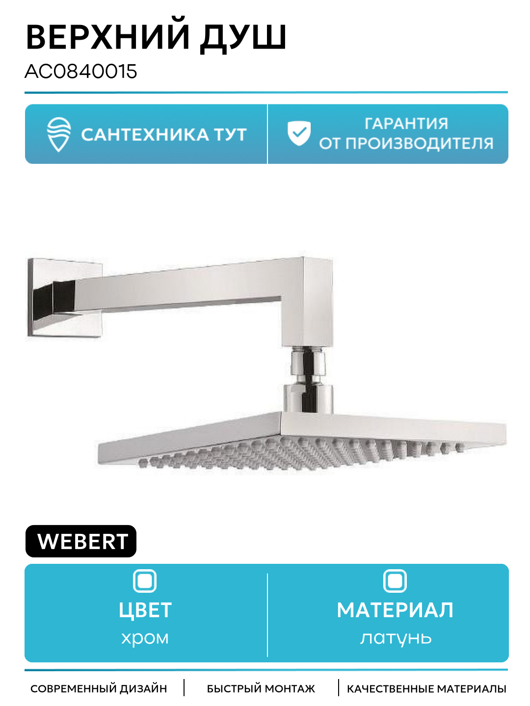 Купить Верхний душ Webert AC0840015 цвет Хром, качество и надежность с доставкой по всей России. Верхний душ Webert AC0840015 цвет Хром, качество и надежность: сравнение цен, характеристики, фото, актуальное наличие и цены.