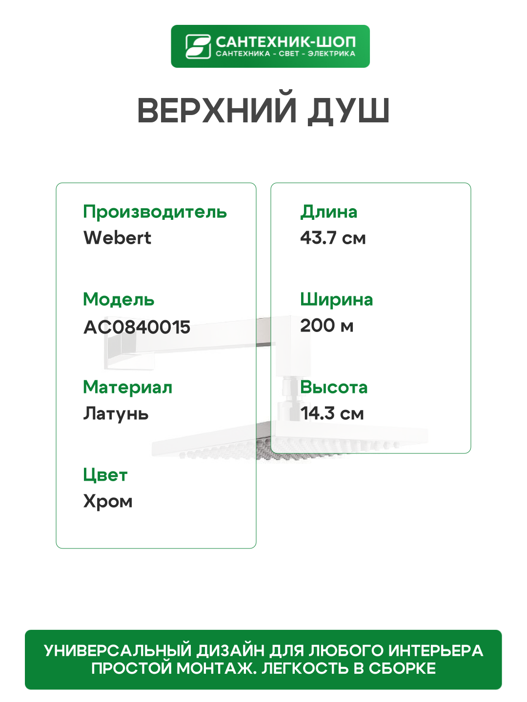 Купить Верхний душ Webert AC0840015 цвет Хром латунь с доставкой по всей России. Верхний душ Webert AC0840015 цвет Хром латунь: сравнение цен, характеристики, фото, актуальное наличие и цены.