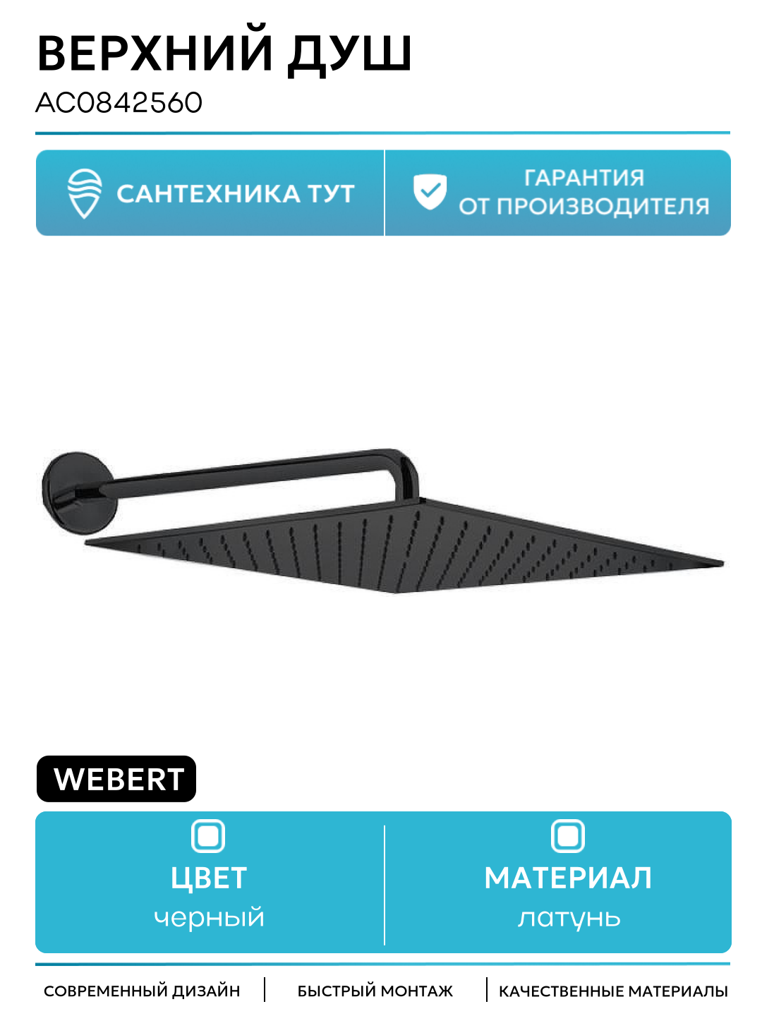 Купить Верхний душ Webert AC0842560, черный, качество и надежность с доставкой по всей России. Верхний душ Webert AC0842560, черный, качество и надежность: сравнение цен, характеристики, фото, актуальное наличие и цены.
