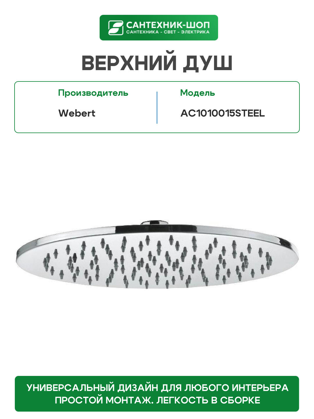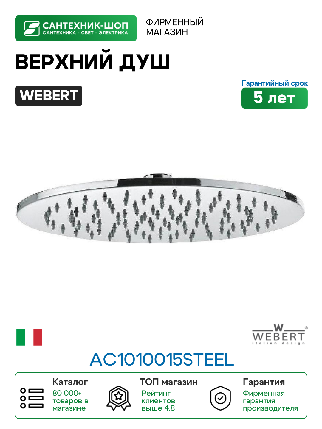 Верхний душ Webert AC1010015STEEL Хром нержавеющая сталь: сравнение цен, характеристики, фото, актуальное наличие и цены.