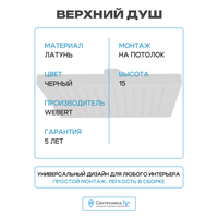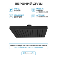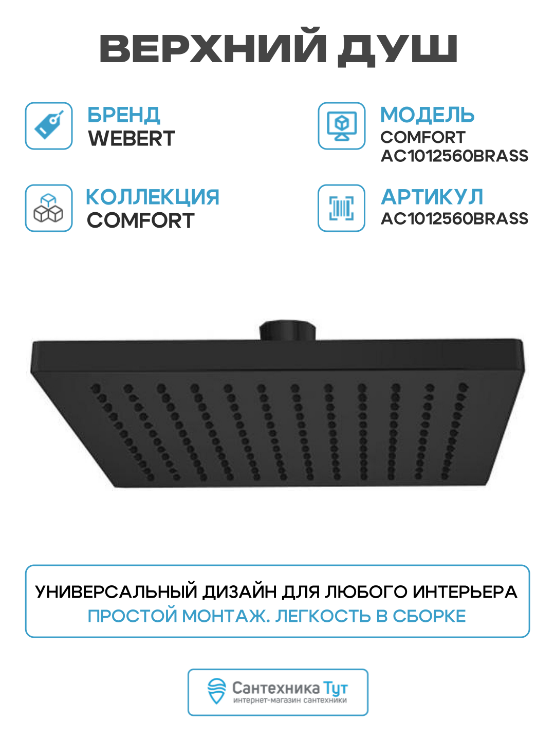 Верхний душ Webert Comfort AC1012560BRASS Черный матовый латунь на потолок: сравнение цен, характеристики, фото, актуальное наличие и цены.