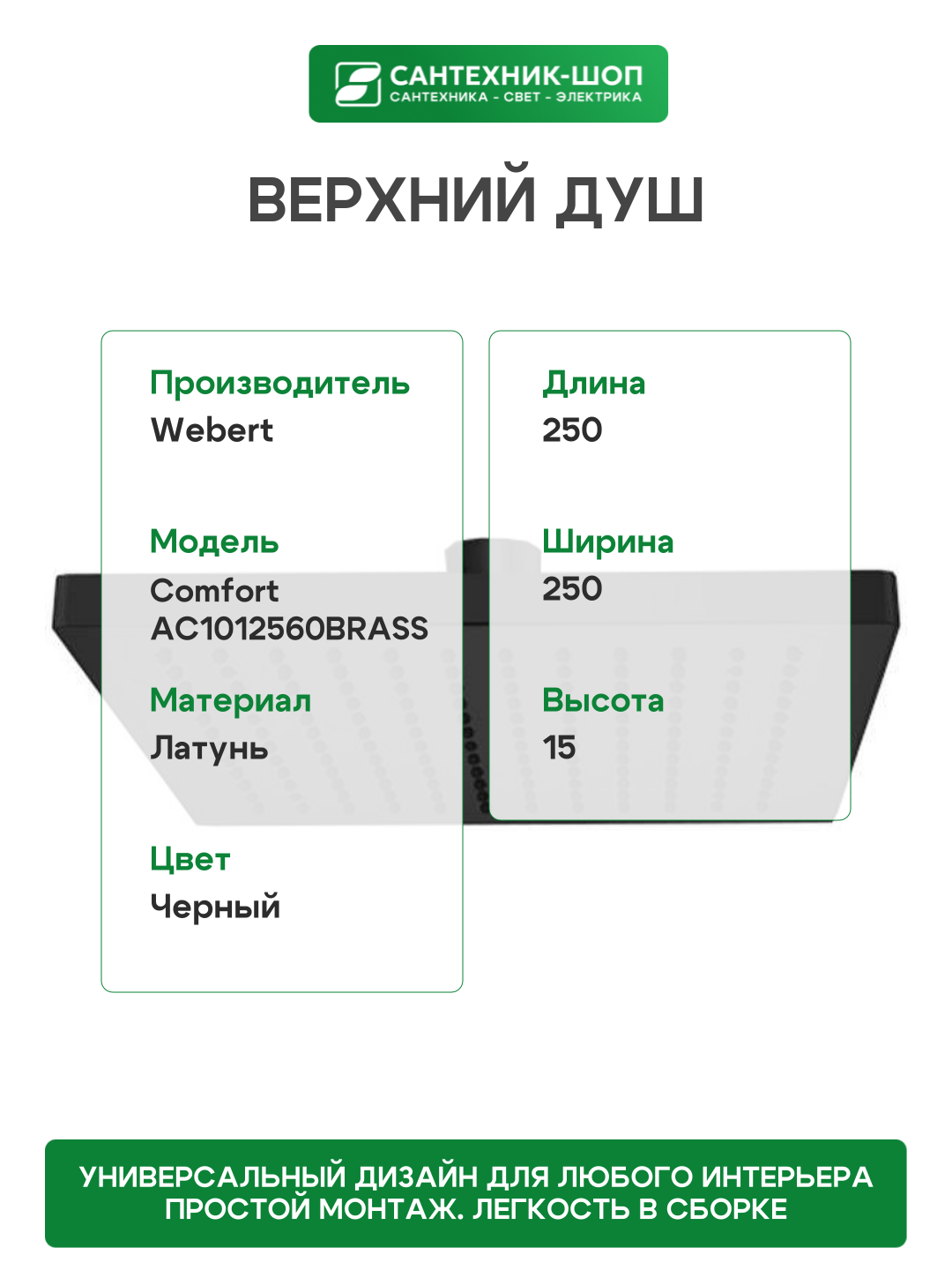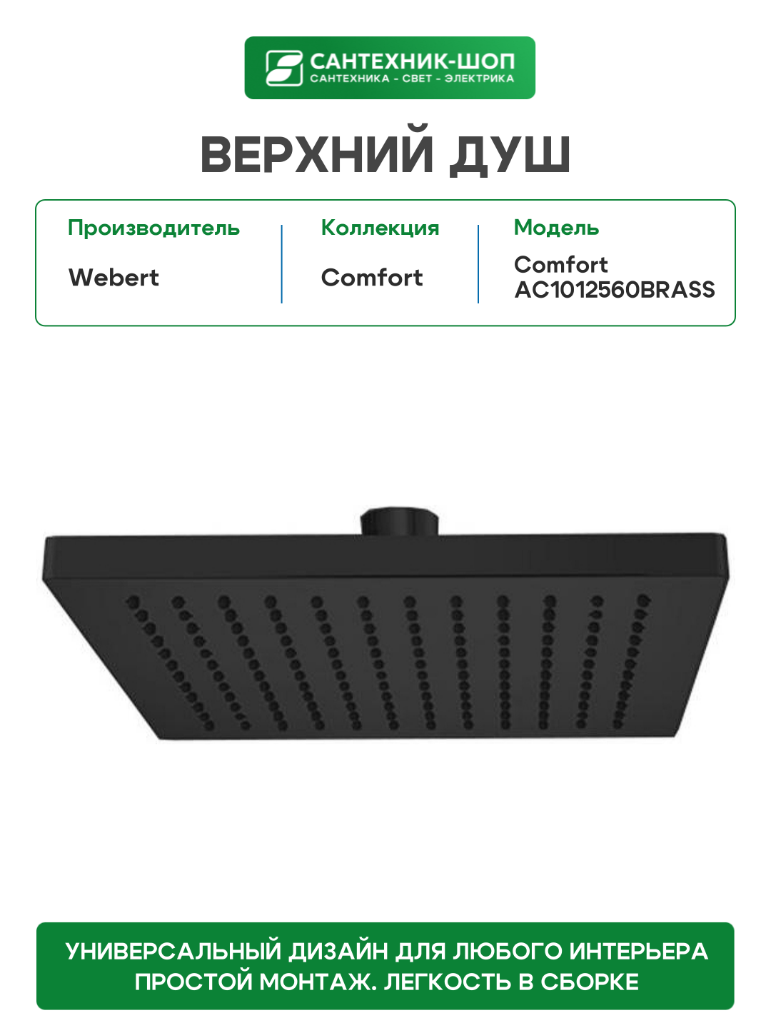 Верхний душ Webert Comfort AC1012560BRASS Черный матовый латунь на потолок: сравнение цен, характеристики, фото, актуальное наличие и цены.