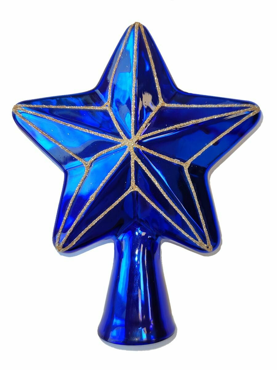 Верхушка на ёлку Звезда синяя ТМ Коломеев выполнена из стекла, декорирована золотыми блёстками. В индивидуальной прозрачной упаковке. Украшение приятно не только иметь у себя в коллекции, но и получить в подарок. На нашей страничке вы найдете стеклянные шары и игрушки на елку, новогодний декор, символы наступающего нового 2025 года от различных производителей.
