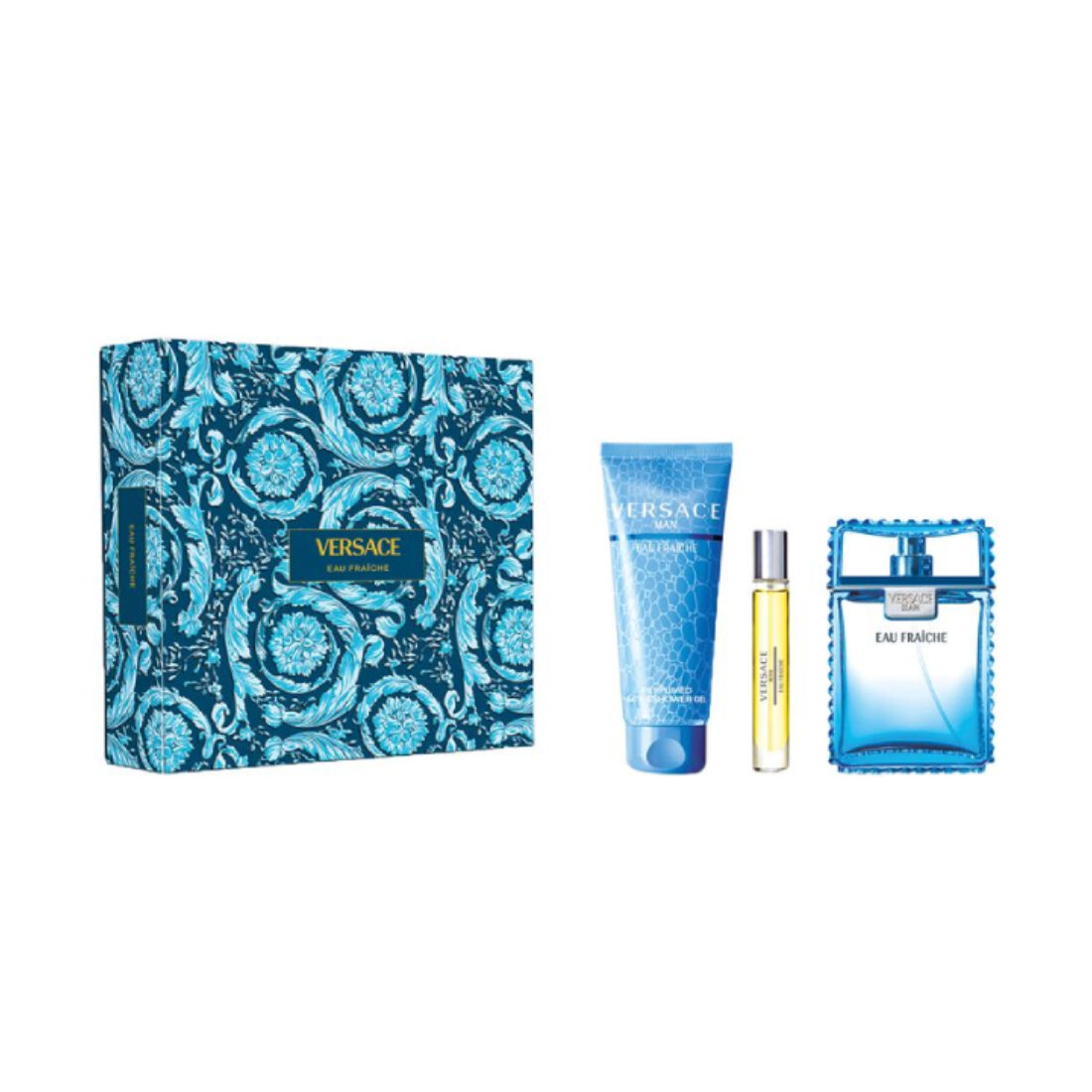 Подарочный набор Versace » Eau Fraiche Man » — для мужчин, 100 мл духи + 10 мл духи + 150 мл гель для душа: сравнение цен, характеристики, фото, актуальное наличие и цены.