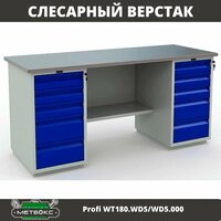 Верстак двухтумбовый слесарный Практик Profi W WT180. WD5/WD5.000 (c выдвижными ящиками, 1800 мм, для резки, заточки, обработки металлов, универсальный): сравнение цен, характеристики, фото, актуальное наличие и цены.