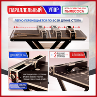 Параллельный упор. Имеет две рабочие стороны - со стороны пилы ровная, глухая поверхность Со стороны фрезера углубление для фрезеровки которое позволяет работать с разными гранями фрез и множеством углов.