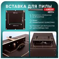 Вставка с разметкой, для циркулярной пилы 380 мм х 380 мм с готовой прорезью 250 мм х 4 мм, под диск пилы
