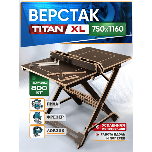 Складной верстак «Титан XL» от бренда Стройарт Мебель — универсальное решение для тех, кто работает с деревом. Это полноценный фрезерно-пильный стол, который объединяет функциональность двух станков в одном компактном устройстве.