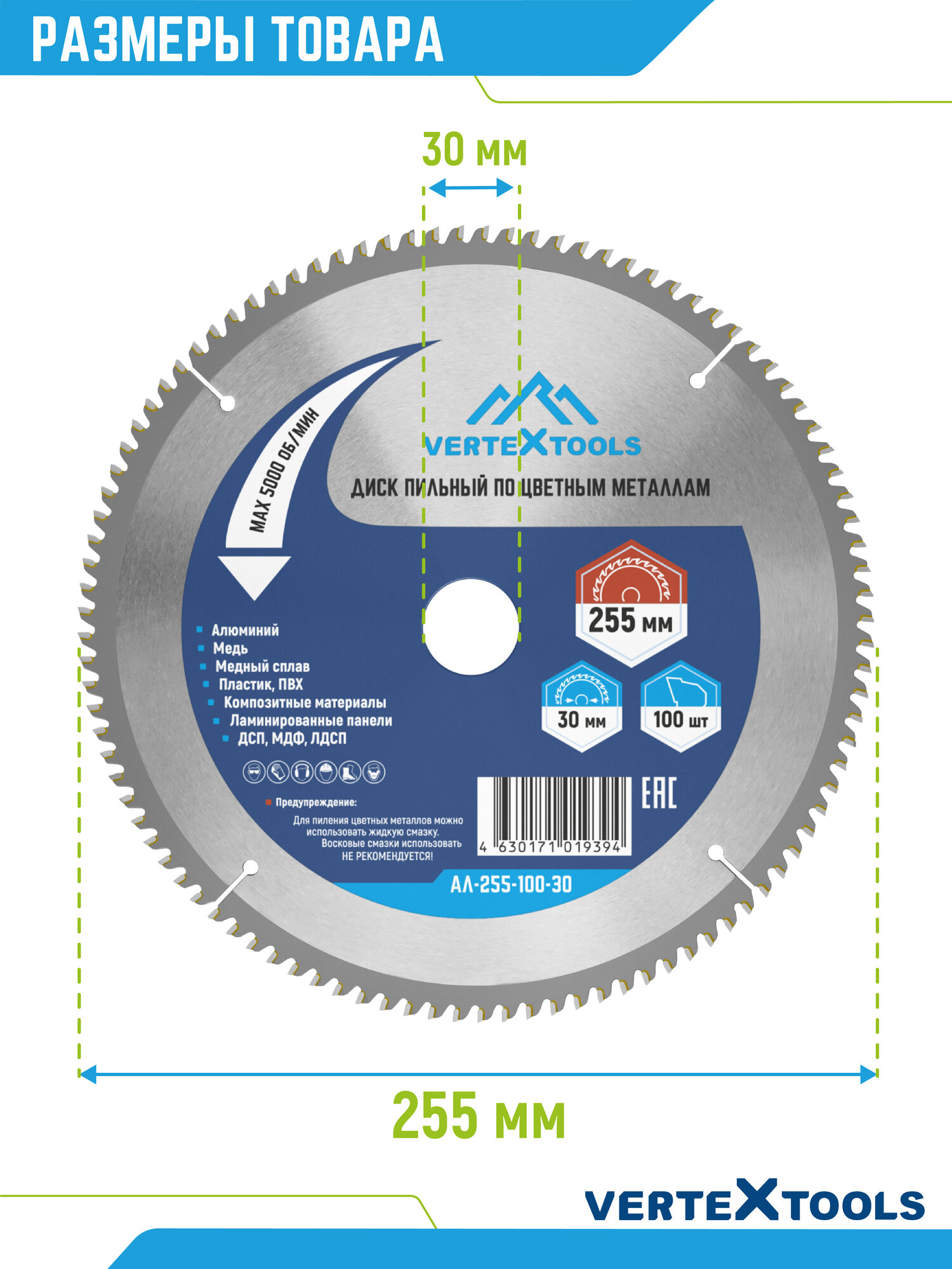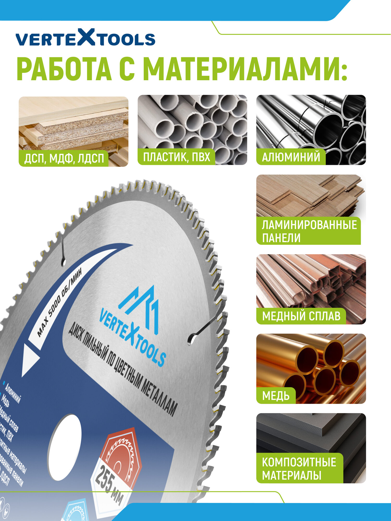 Предназначен для циркулярных и торцовочных пил. Используется для работ по алюминию, меди, пластику, композитным материалам и ламинированным панелям.