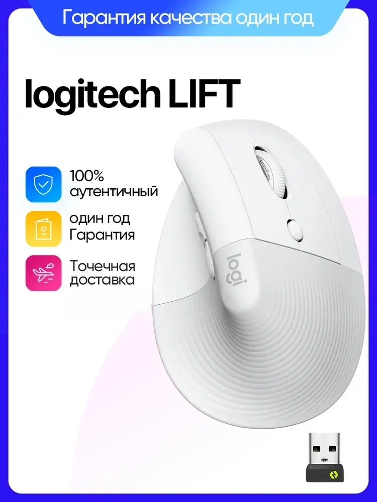 Купить Вертикальная беспроводная мышь Logitech Lift, бесшумная мышь Bluetooth, белый с доставкой по всей России.