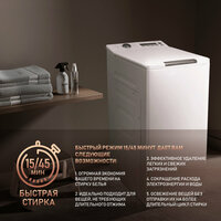 выбор скорости отжима, выбор температуры стирки, контроль баланса, отложенный старт, сигнал окончания стирки