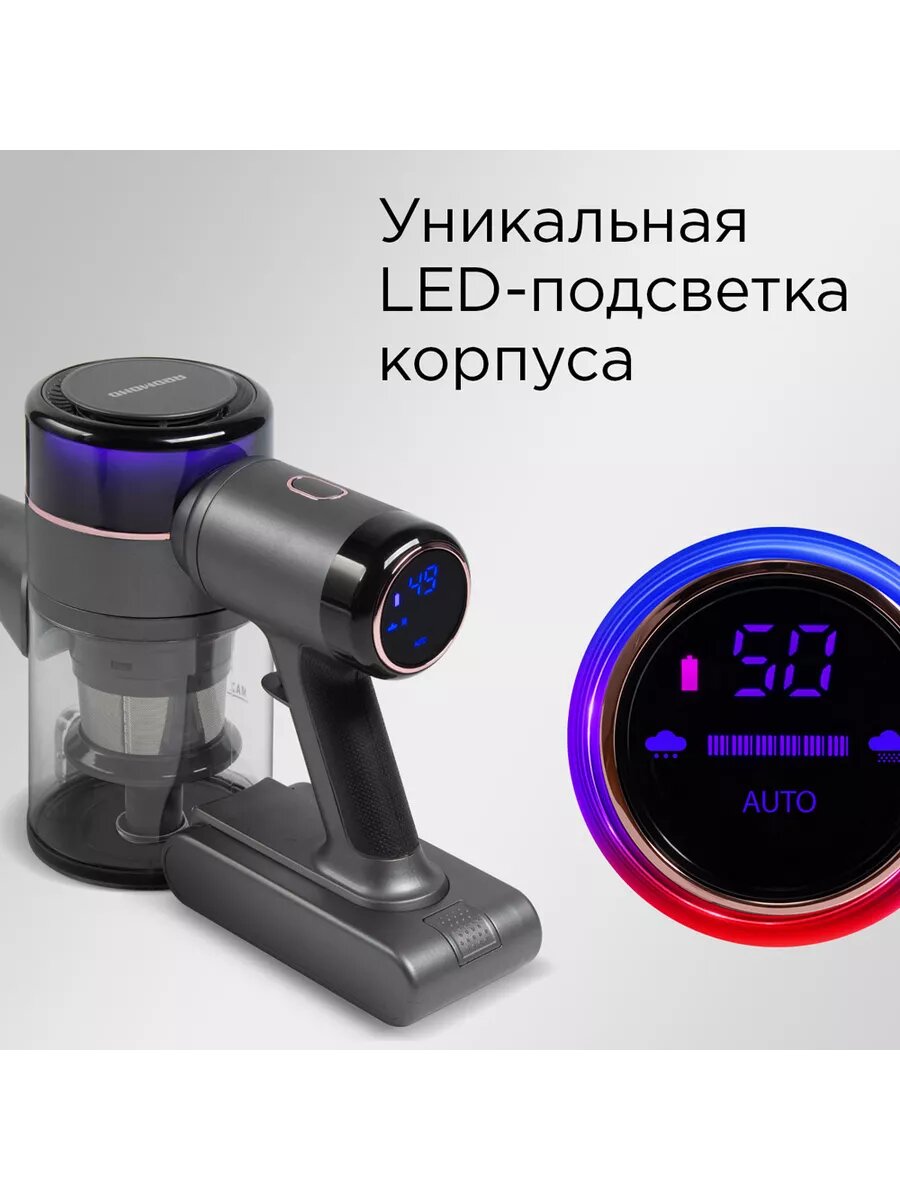 Вертикальный беспроводной пылесос REDMOND VH1311, LED-подсветка зоны уборки: сравнение цен, характеристики, фото, актуальное наличие и цены.