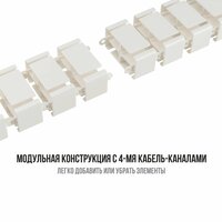 Модульная конструкция позвонков позволяет пользователям добавлять или убирать отдельные элементы кабель канала по мере необходимости. Каждый из элементов данного кабель-канала имеет 4 отделения для проводов для разделениях по типу или предназначению.