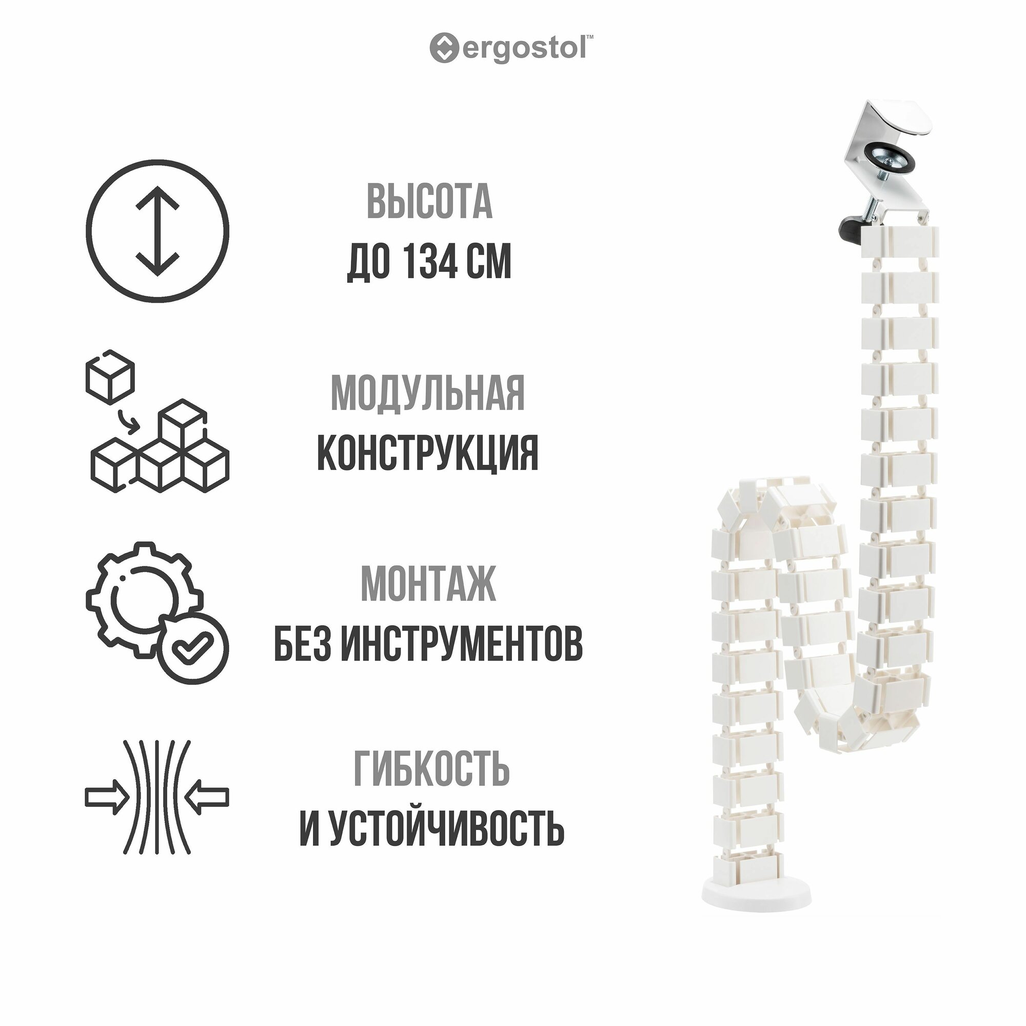 Динамичный дизайн кабель-канала Ergostol Quad идеально подстраивается под движение стола, надежным образом скрывая и организовывая провода