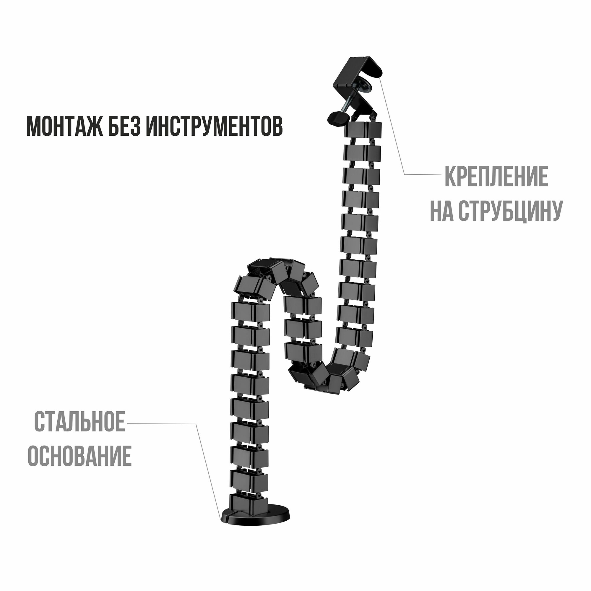 Утяжеленное стальное основание придает дополнительную устойчивость констуркции этого гибкого кабель-канала, делая его идеальным органайзером для проводов.