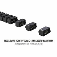 Модульная конструкция позвонков позволяет пользователям добавлять или убирать отдельные элементы кабель канала по мере необходимости. Каждый из элементов данного кабель-канала имеет 4 отделения для проводов для разделениях по типу или предназначению.