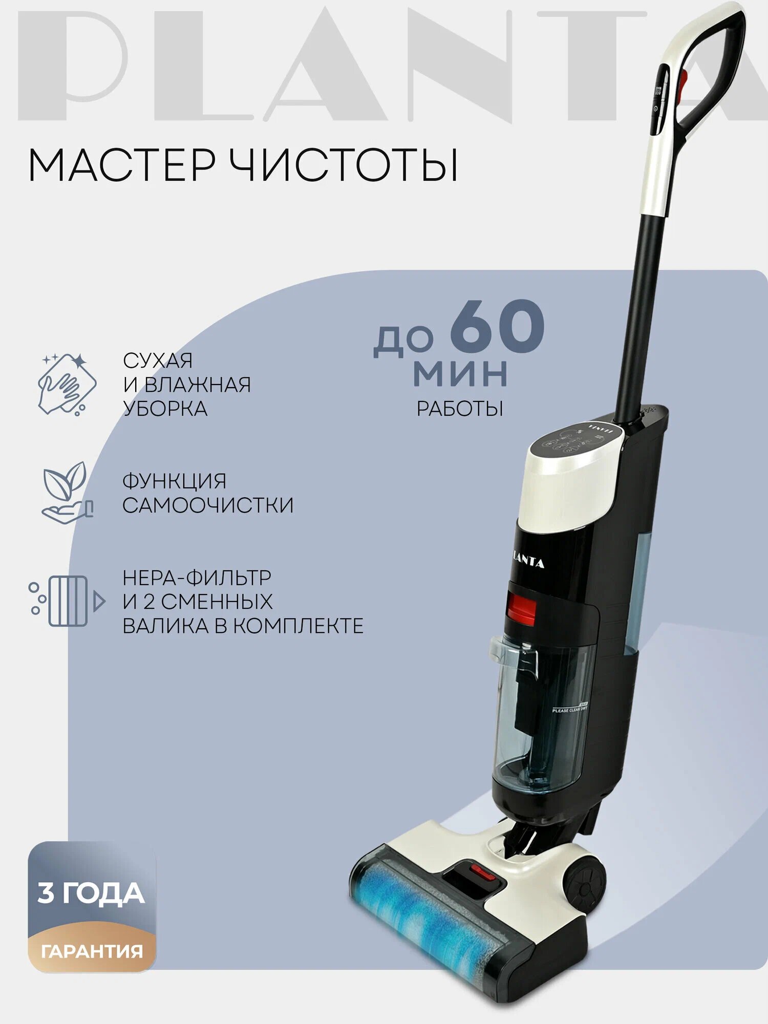 Купить Вертикальный моющий пылесос PL-CW201, 3 в 1, аквафильтр, сухая и влажная уборка с доставкой по всей России.