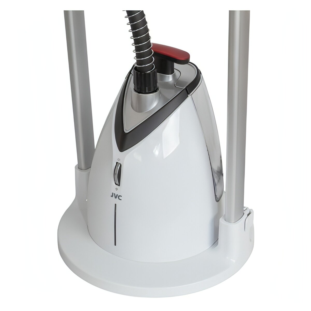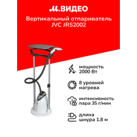 Отпариватель напольный JVC JRS2002 - мощность 2000 Вт, съемный бачок для воды 2,3 л, 2 регулируемые телескопические стойки для большей устойчивости, 2 вида глажения: вертикальное и горизонтальное, доска для глажения, чехол из износостойкой ткани для доски.