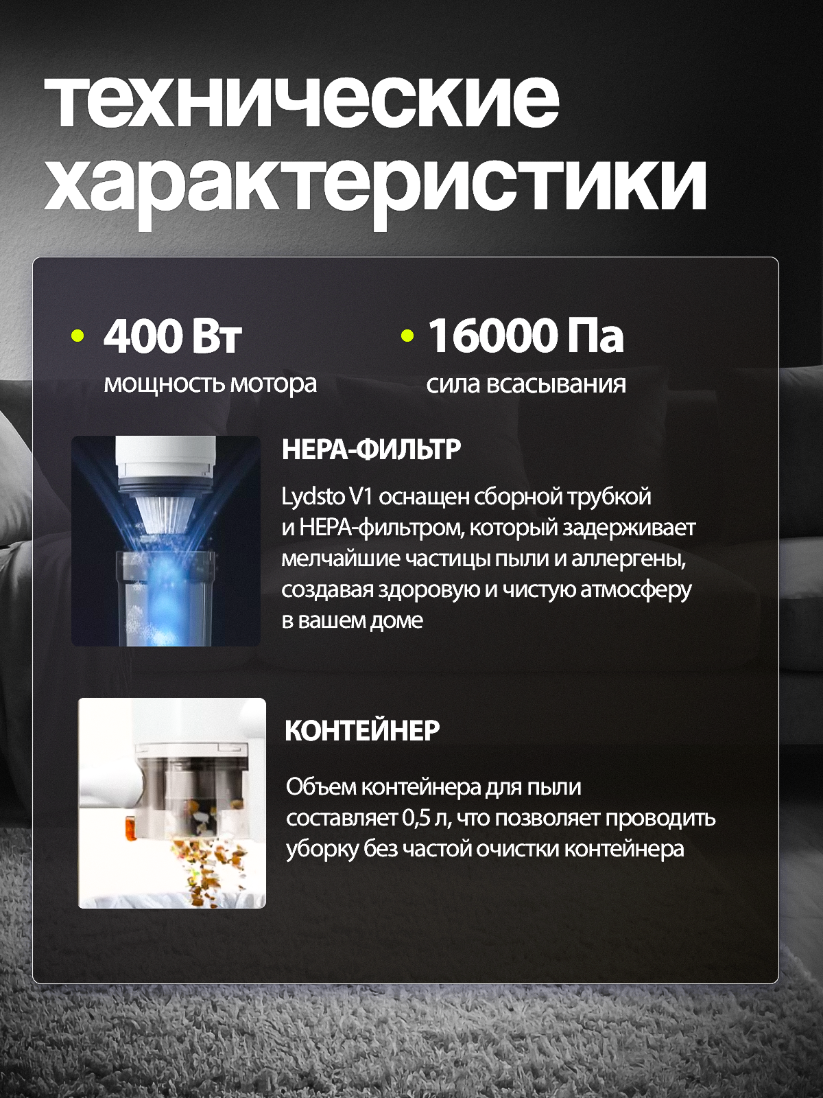 Вертикальный проводной пылесос Lydsto V1, контейнер, 400Вт, длина шнура 5 м: сравнение цен, характеристики, фото, актуальное наличие и цены.