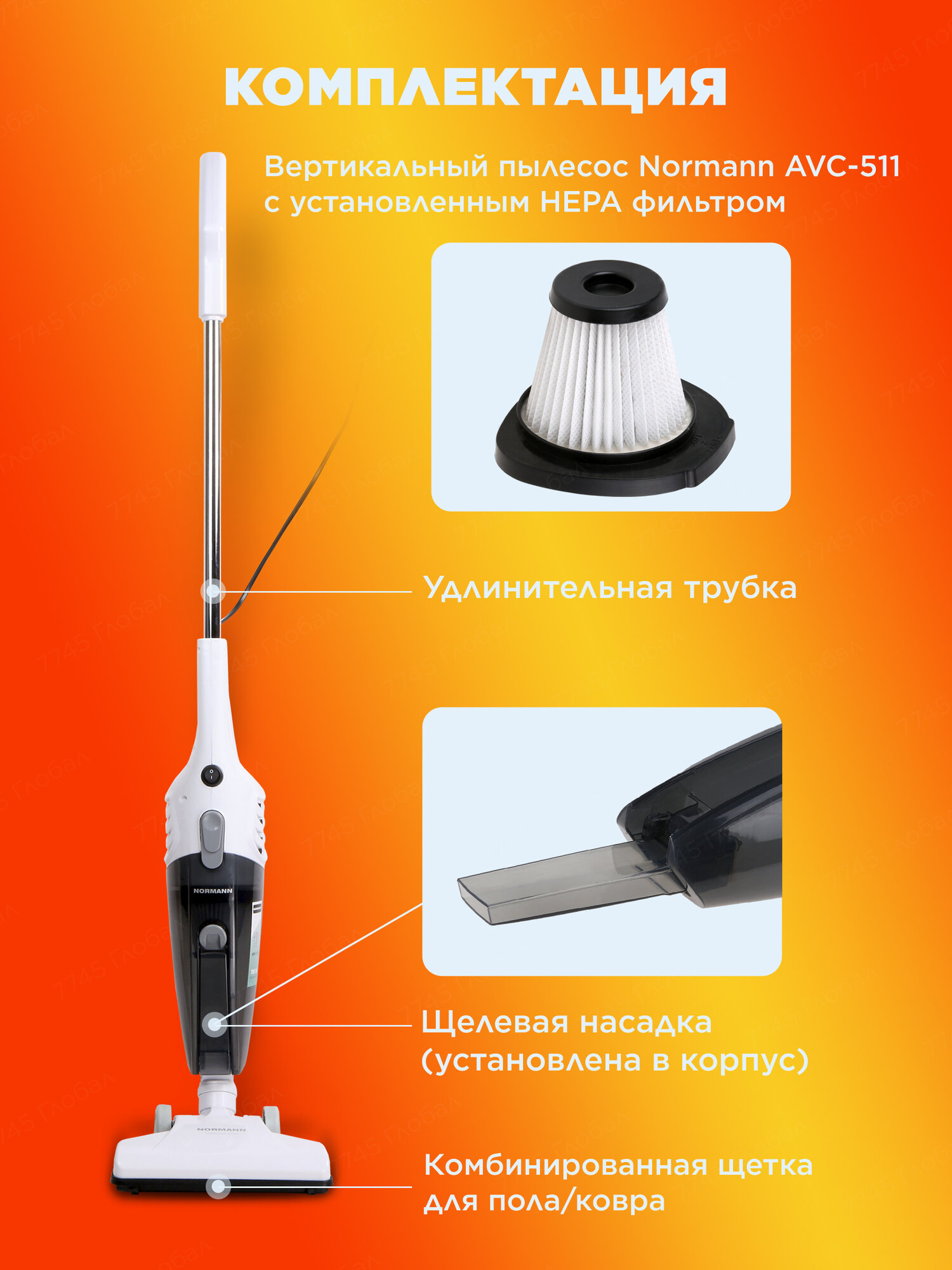 | В комплекте | комбинированная насадка, насадка для мягкой мебели, удлинительная трубка/шланг, фильтр тонкой очистки, щелевая насадка, электрощетка |