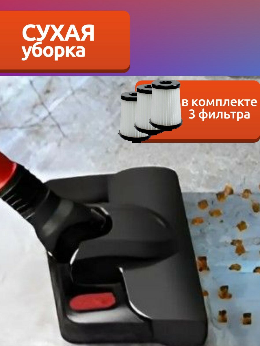 Познакомьтесь с нашим мощным беспроводным вертикальным пылесосом, который станет незаменимым помощником в каждой уборке. Этот мощный пылесос для дома обеспечивает идеальную чистоту с минимальными усилиями. Благодаря уникальной технологии, вы сможете делать как сухую, так и влажную уборку и идеально удалит грязь и пыль с ковров и мебели. Выберите этот пылесос вертикальный с аккумулятором и забудьте о проводах! Пылесос легко справляется с уборкой автомобиля и чисткой диванов от шерсти животных, обеспечивая превосходный результат. Он также трансформируется в воздуходув, при помощи которого легко сдуть листья, снег, мусор с машины, с дорожек и т. д. Компактные размеры и легкость в использовании делают его идеальным для быстрой уборки пола на любой поверхности, включая труднодоступные места, такие как за компьютером или в углах комнаты. Имеет несколько насадок в комплекте, также 3 нера фильтра и 2 запасных салфеток для уборки. Благодаря контейнеру для сбора пыли, вы легко избавитесь от мусора после каждой уборки. Эта электрошвабра является отличным выбором для желающих сэкономить время и силы, ведь даже ручной режим прекрасно справляется с задачами. Не упустите возможность сделать вашу уборку более эффективной и легкой. Приобретите наш пылесос уже сегодня и убедитесь в его превосходстве!