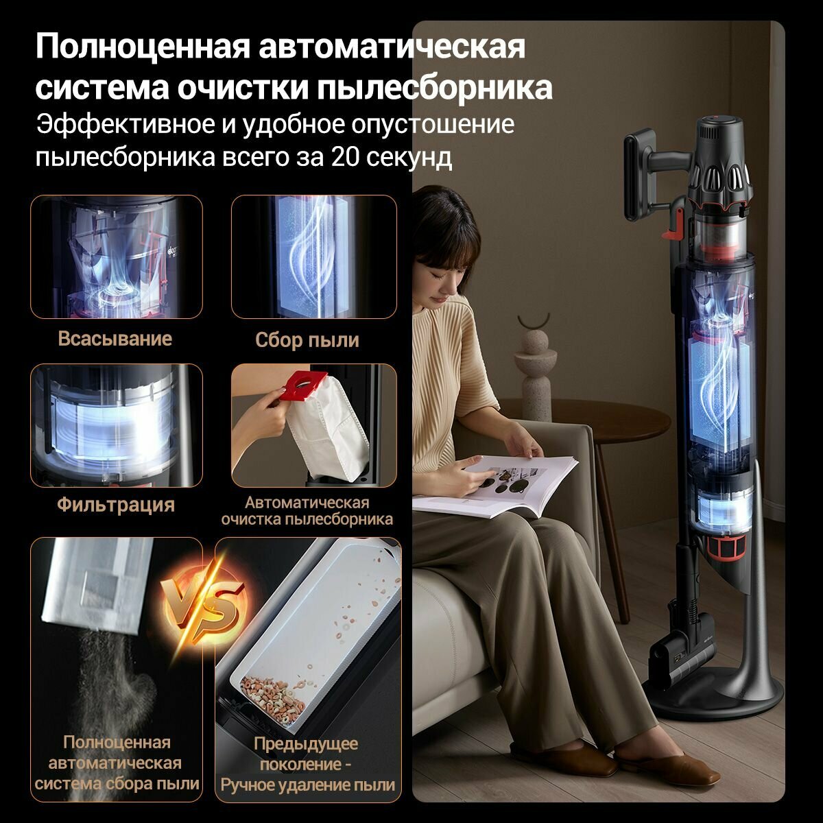 | Особенности конструкции | BLDC-мотор, автоматическое сматывание шнура, вертикальная парковка, индикатор заполнения пылесборника, место для хранения насадок, регулятор мощности на корпусе, управление мощностью на рукоятке |