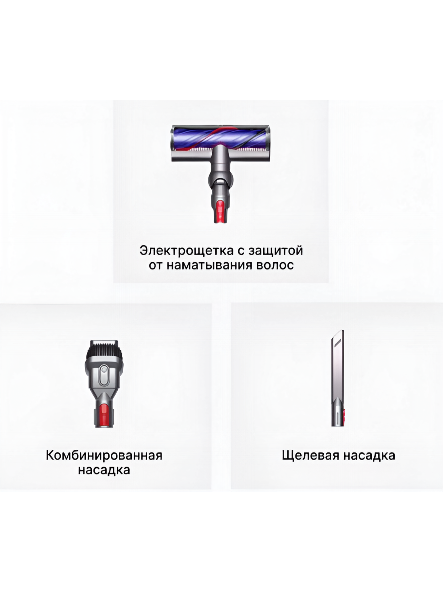 Dyson V12 Detect Slim Absolute SV46Беспроводной пылесос Dyson V12 Detect Slim Absolute с многоступенчатой системой фильтрации улавливает мельчайшие пылевые частицы и содержащиеся в них аллергены. Отлично удаляет грязь с гладких покрытий и ворсистых поверхностей. Система выходных фильтров очищает выходящие воздушные потоки, улучшая качество воздуха в помещении. Это идеальный вариант для семей с детьми и домашними питомцами. Мощный двигатель Dyson HyperdymiumВращается на скорости до 105 000 оборотов в минуту, собирая микроскопические частицы и крупный мусор. Обнаруживает невидимые частицы пылиЛазерный луч, установленный под точным углом, позволяет увидеть невидимую пыль на твердом напольном покрытии, так что вы ничего не пропустите. Измеряет микроскопические частицы пылиПьезоэлектрический датчик непрерывно измеряет и подсчитывает частицы пыли, при необходимости автоматически увеличивая мощность всасывания. Технология Radial Root CycloneВосемь циклонов создают центробежную силу до 96000g, чтобы втягивать пыль в контейнер, а не в фильтр, в результате чего потери мощности всасывания не происходит.